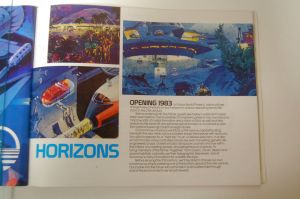 I’ve seen this guide book, dated 1982, listed on eBay as the Opening Day Guide, although there is nothing on the cover to indicate as much. When I bought it at an antique store many years ago, the white label that someone annoyingly put on the cover, and which, as you can see, I unsuccessfully removed, stated that it was a pre-opening guide. I payed $10 for it.