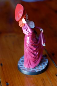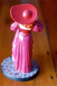 The Redhead measures 9″ tall by 4″ wide by 4″ deep. Her hair and hat are pewter.
