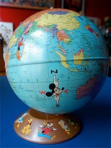 I thought I’d share a picture of part of my globe collection. There are several more, scattered around the house. You may also see a few Disney items in this photo, all of which I’ll be sharing here in the future.