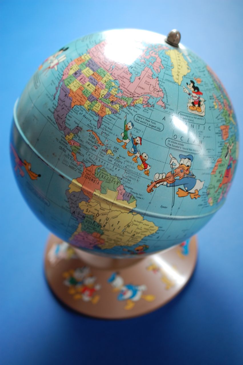 Another winner is this metal Disney globe. It’s a smaller globe, measuring 10″ from the base.