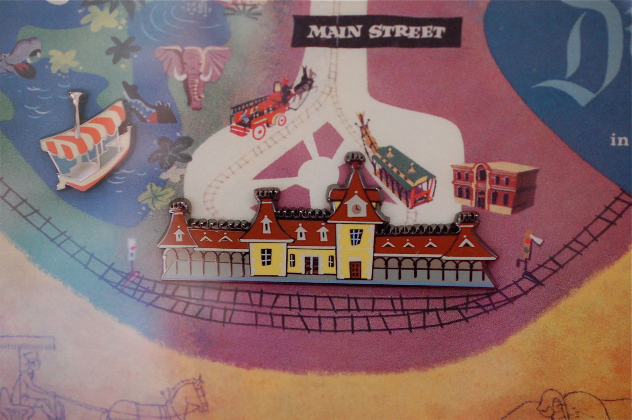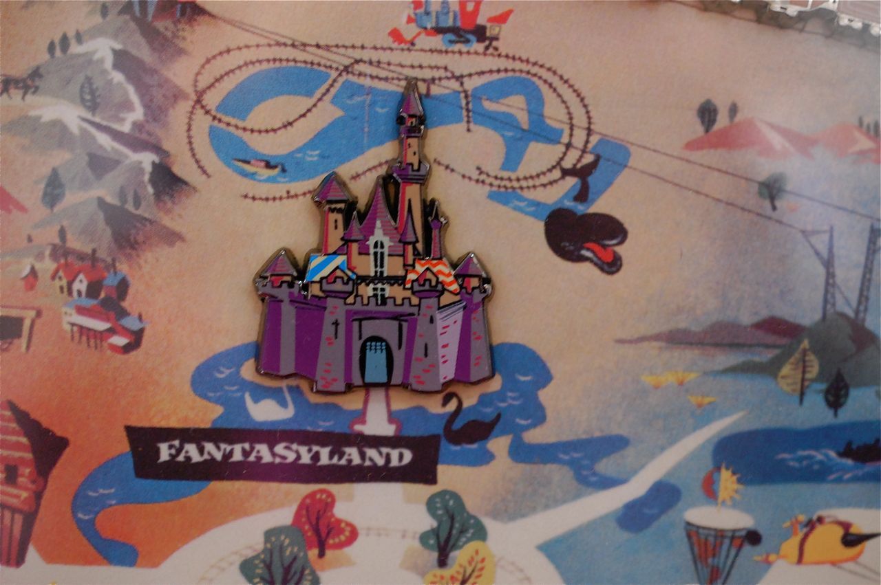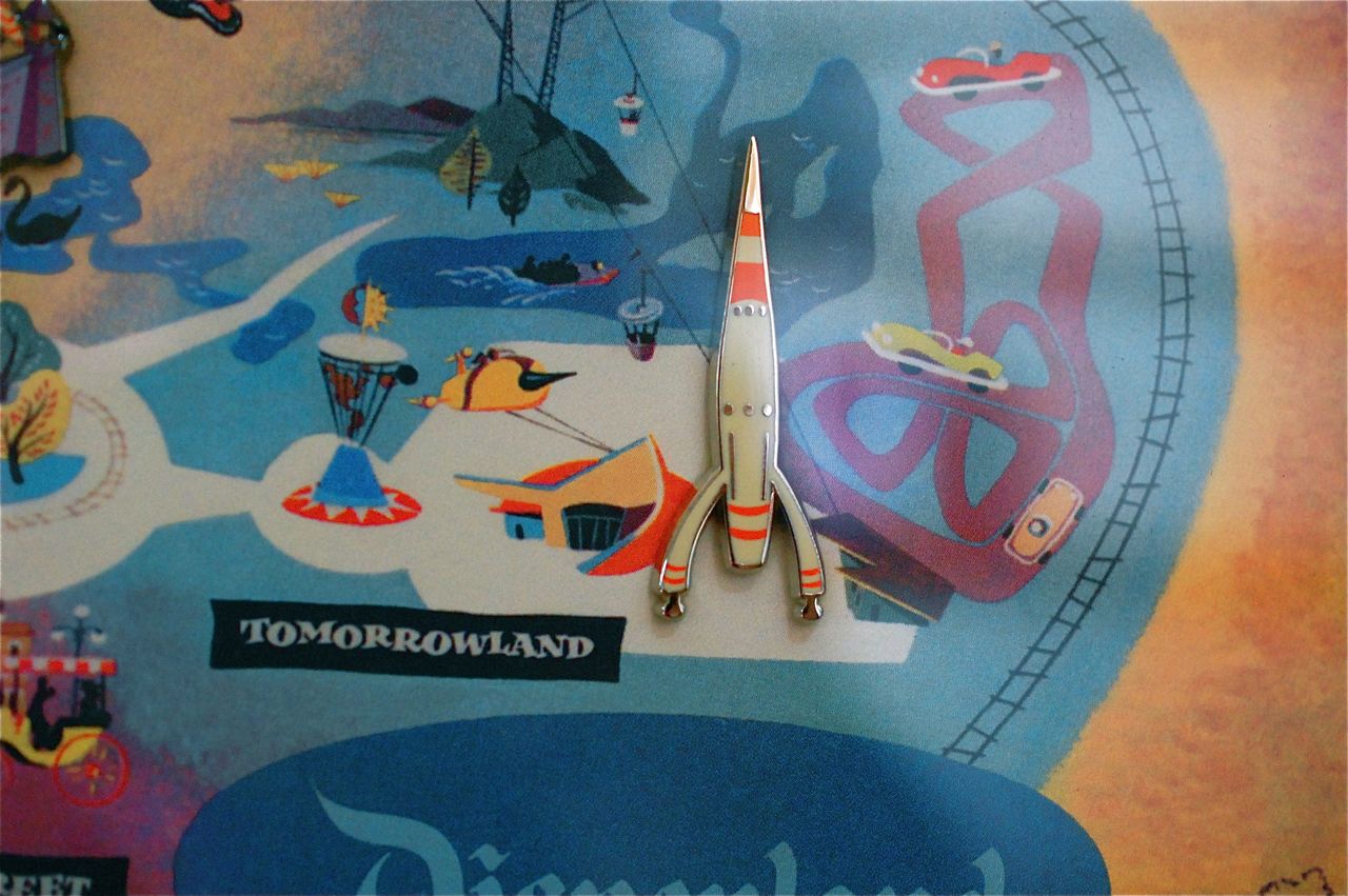 In April of 2005, to celebrate the 50th anniversary of Disneyland, the Disney Catalog reprinted a 1956 Disneyland map, and produced pins of certain attractions and other elements into six pins representing the original Disneyland lands, limited to 1500 sets. A certificate of authenticity is on the back, but it doesn’t give a specific number.