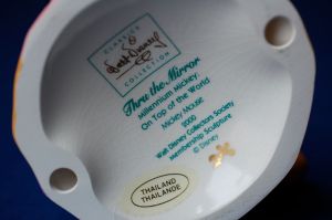 This sculpture depicts Mickey Mouse from the early to mid-30’s. It comes from the Walt Disney Collectors Society.