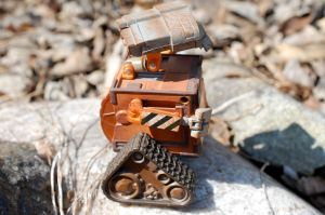 Instead of moving along on his treads, this little guy rolls along on wheels: