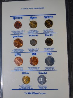Today we share a unique item from Epcot: the World Showcase International Coins set. This coin set dates back to the early 90’s when Epcot was still Epcot Center: