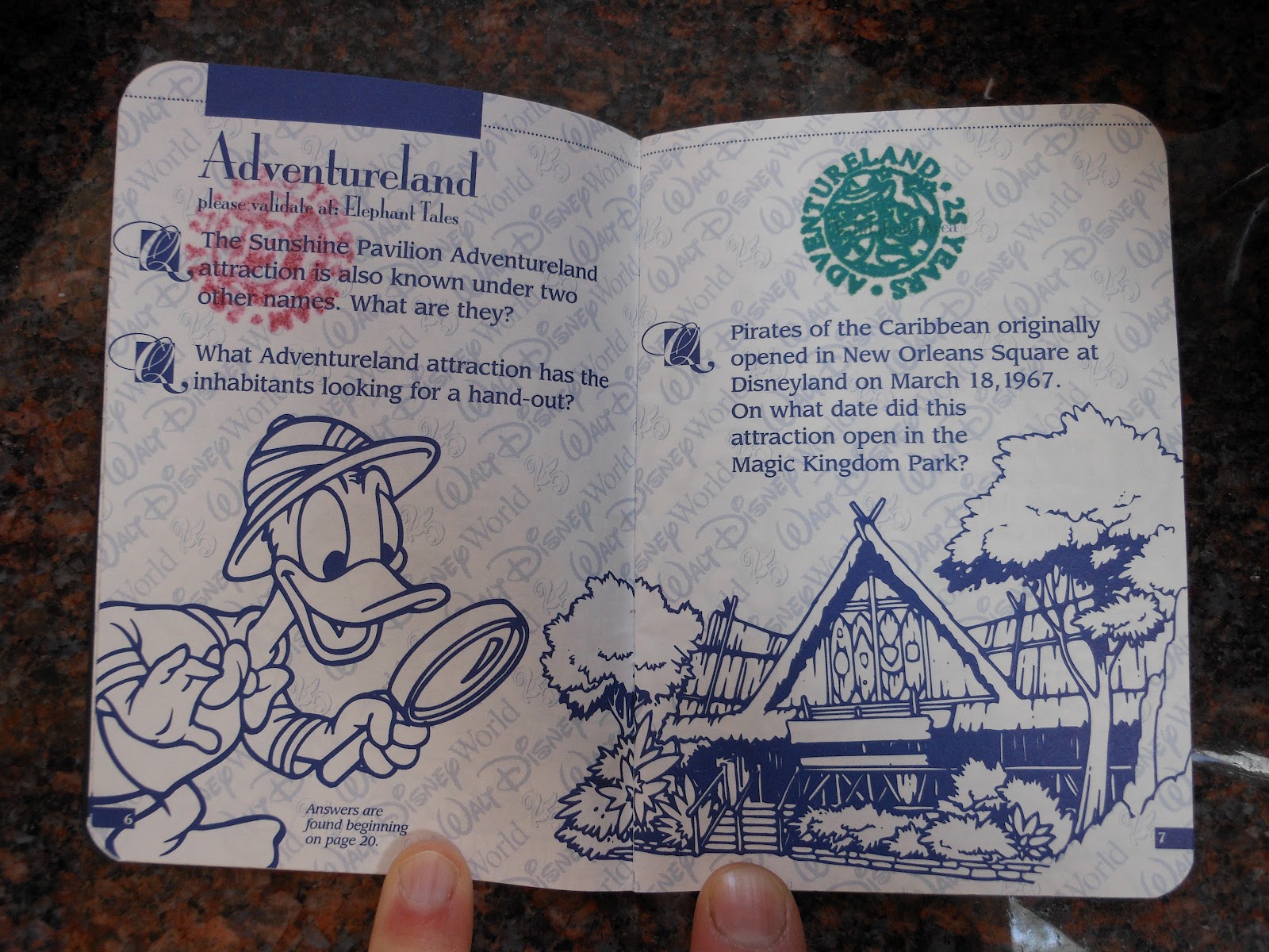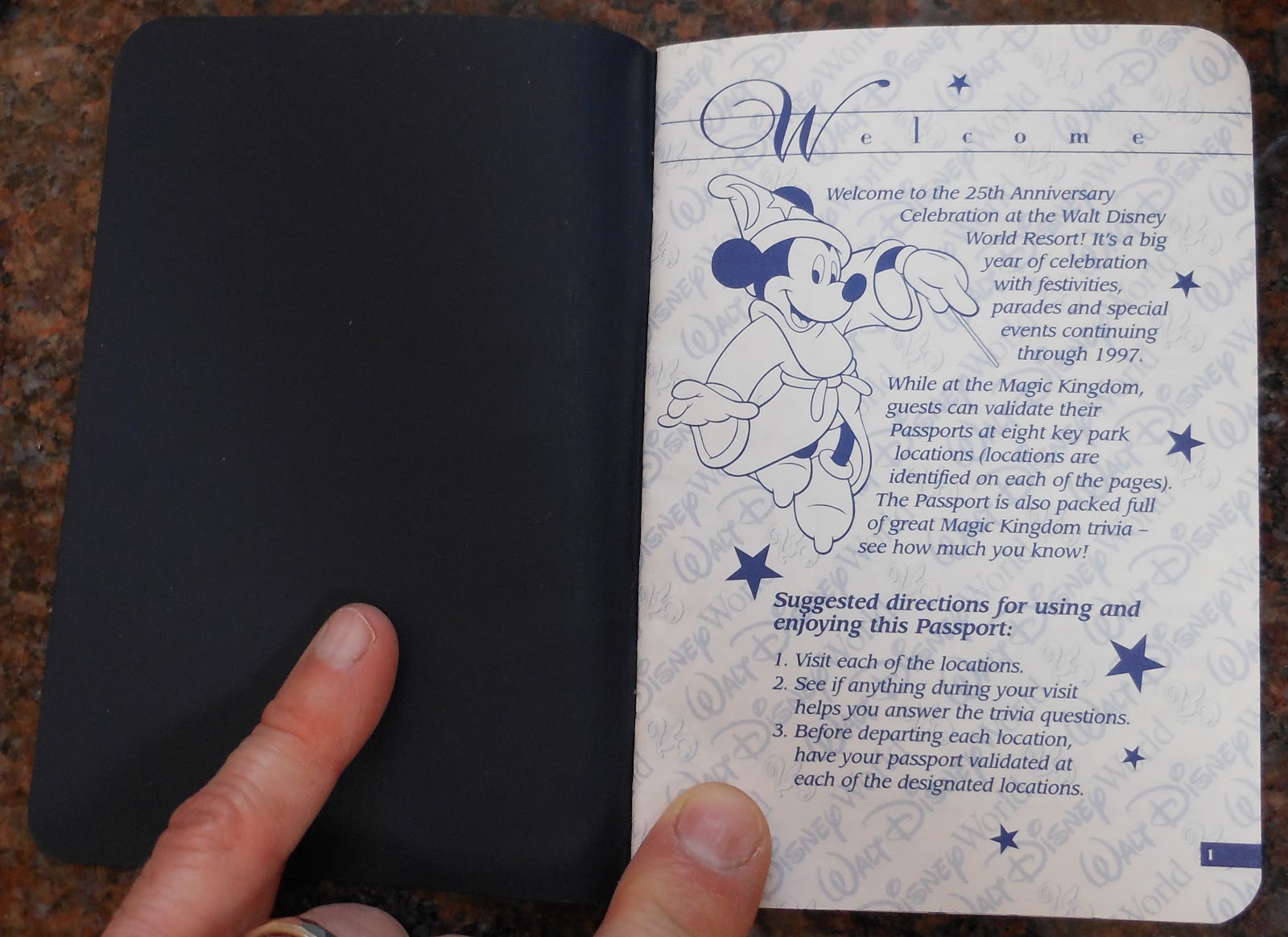 “Welcome to the 25th Anniversary Celebration at the Walt Disney World Resort! It’s a big year of celebration with festivities, parades, and special events continuing through 1997. While at the Magic Kingdom, guests can validate their passports at 8 key park locations (locations are identified on each of the pages). The passport is also packed full of great Magic Kingdom trivia. See how much you know!”