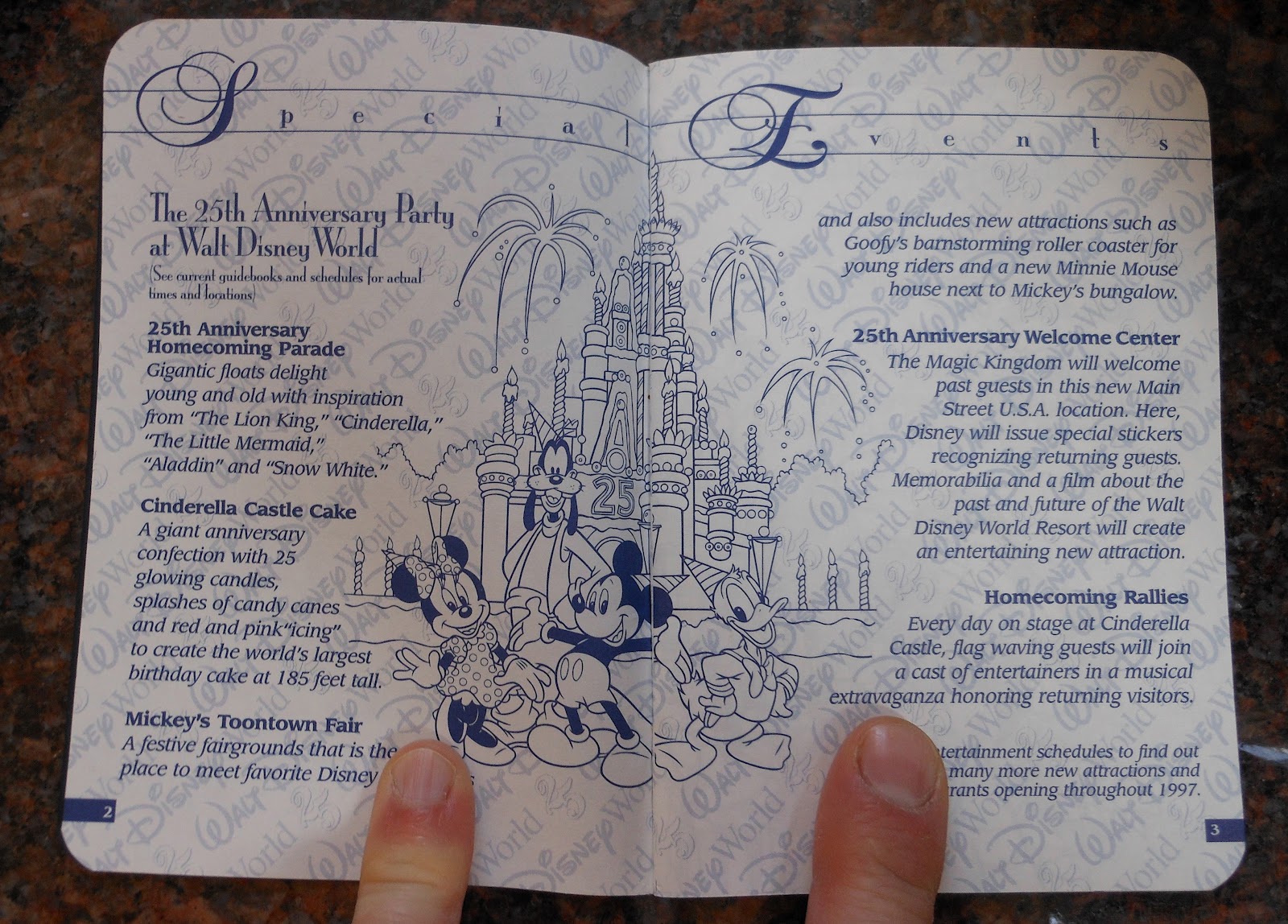 The next couple of pages tell some of the awesome events and parades you’ll experience on your 25th Anniversary visit. Remember the Castle Cake?
