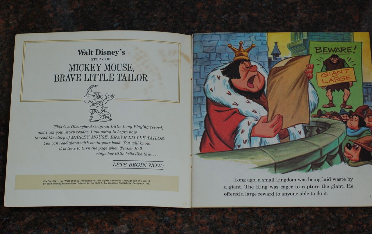 I’ve been eyeing this Mickey Mouse Brave Little Tailor record and story book from 1968 up for a while on eBay, and found it recently on a very successful trip to the Columbus Flea Market.