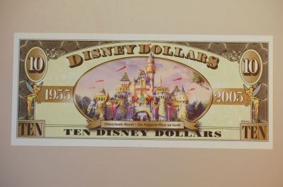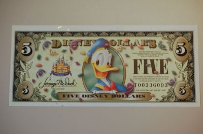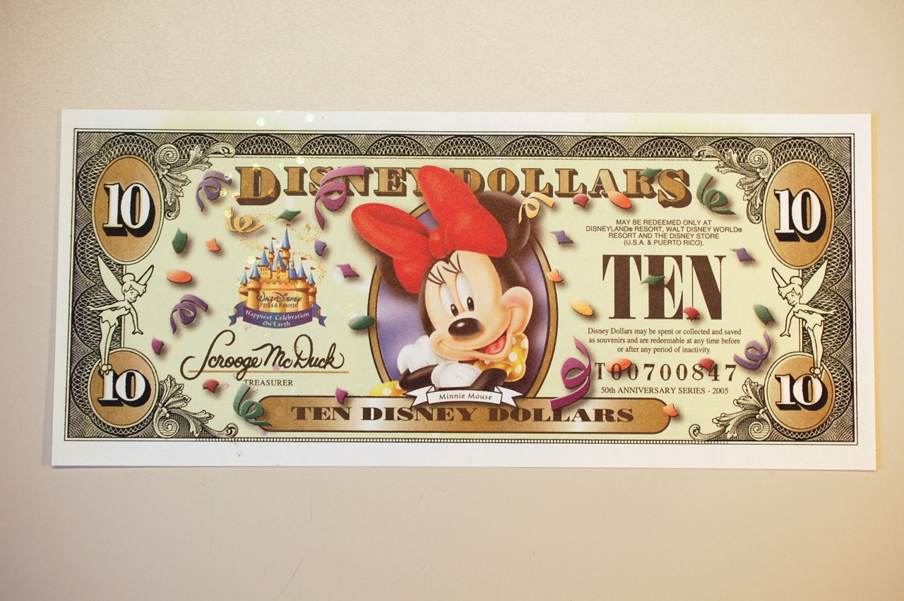 Wait. Where’s the One Dollar Disney Dollar, presumably with Mickey Mouse? Well, believe it or not, Mickey was not on the $1 bill. Mickey was on a $50 bill! And no, I don’t have one! Dumbo was on one of the…Ones, again, not in my possession.