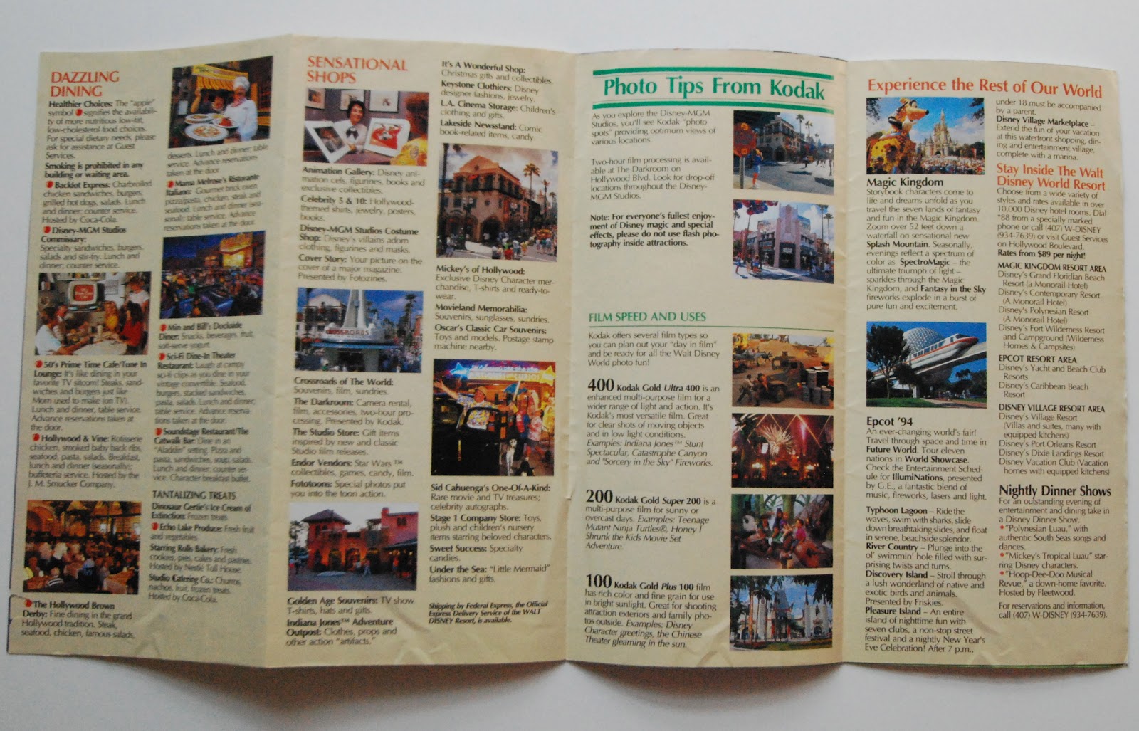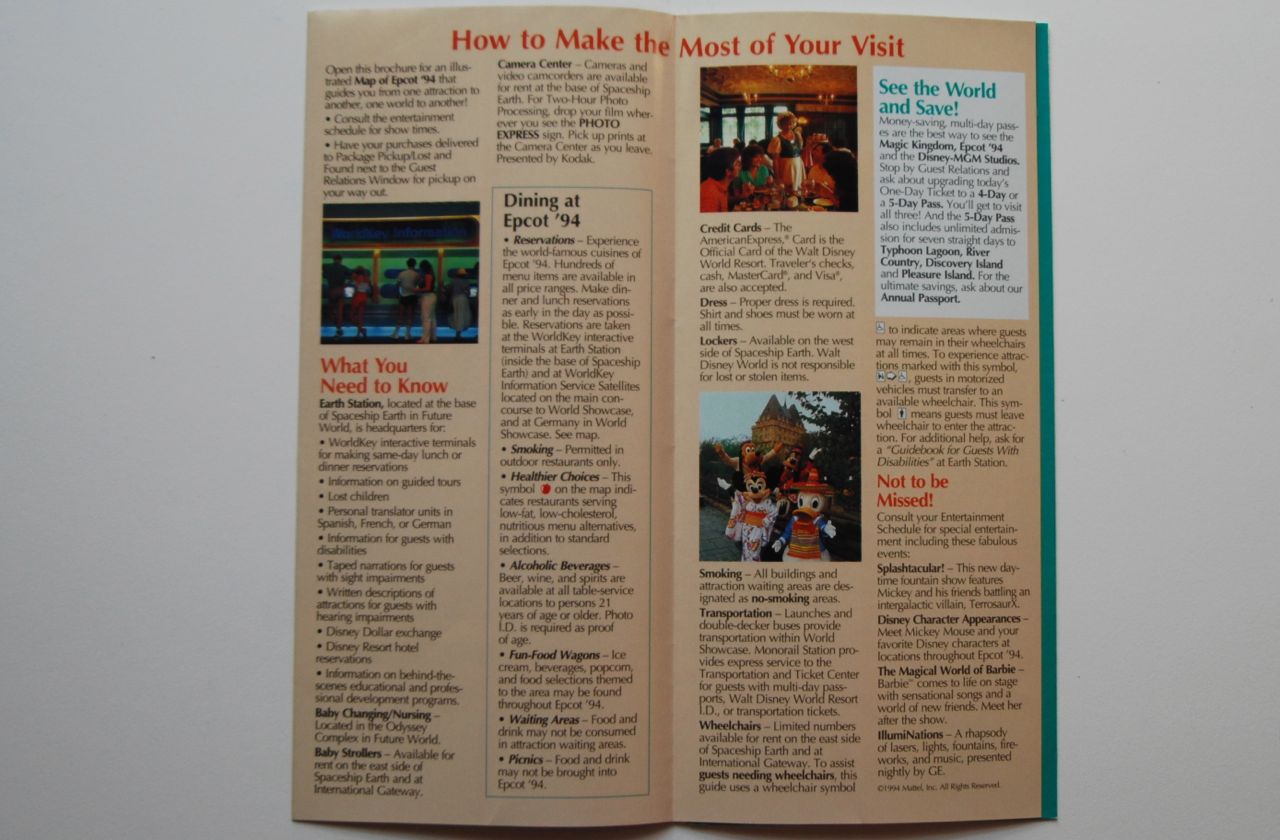 Guidemaps are like a snapshot of a moment in time. A time machine if you will. These Walt Disney World Guidemaps show a wide range of attractions that I dearly miss. I truly believe the Epcot of today doesn’t hold a candle to 1994’s version. And don’t even get me started on Disney’s Hollywood Studios’, (then Disney-MGM Studios) current incarnations of the Backstage Studio Tour and the Magic of Disney Animation. Don’t get me wrong, I still love Walt Disney World, but believe many of the best attractions were around in the early to mid 90’s.