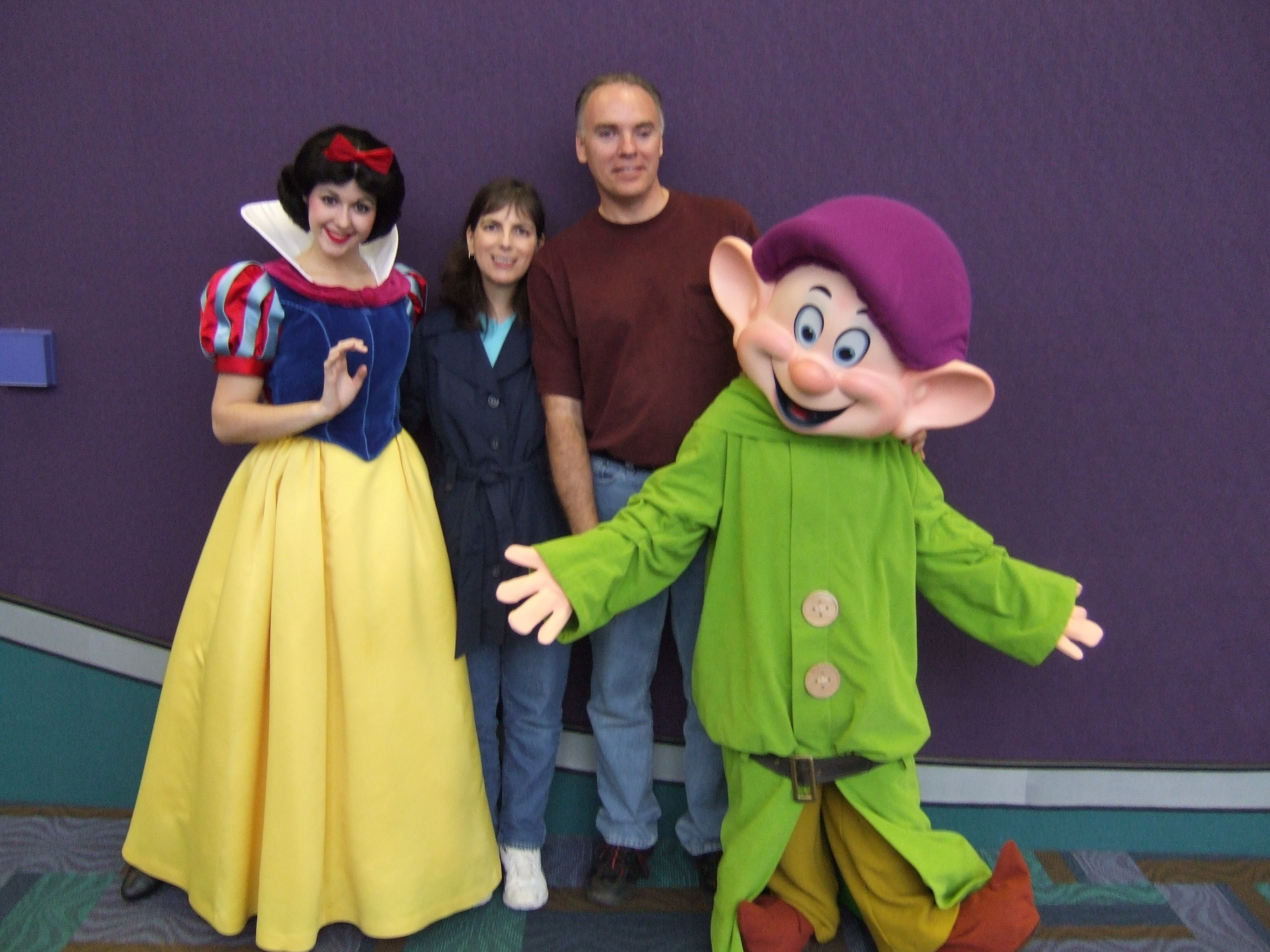 We only have this last shot because it was raining anamorphic cats and dogs in Epcot and Disney had pulled all of the characters out of the Pavilions in World Showcase and put them in one place. We got poses with over half a dozen characters in one lineup, which was short, as most people didn’t know it was happening.