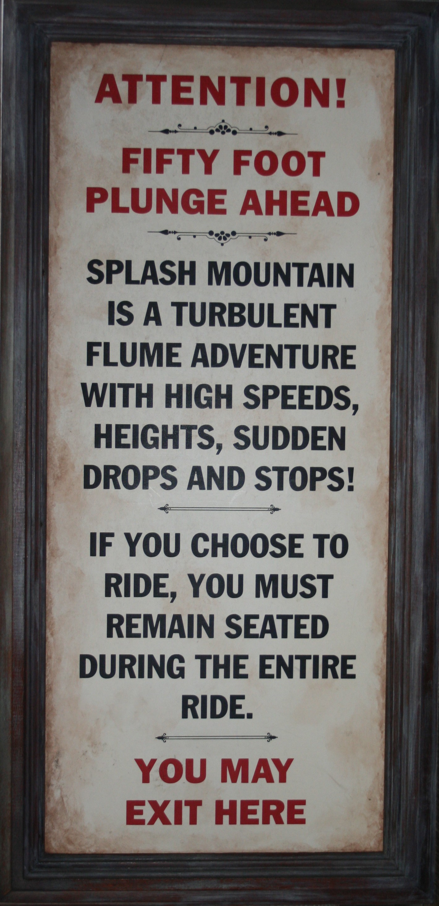 So ol’ Br’er Chicken has left the Brier Patch and headed for tamer free-ranges, but we humans just don’t seem to recognize a good warning when we see one: Fifty Foot Plunge. Sudden Drops. Wet… Bring it on!