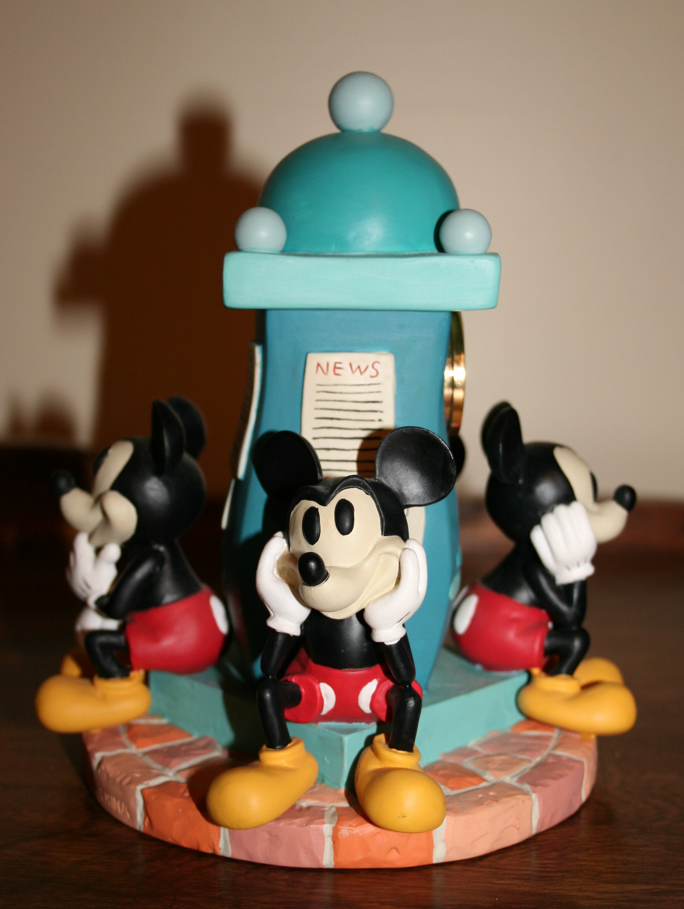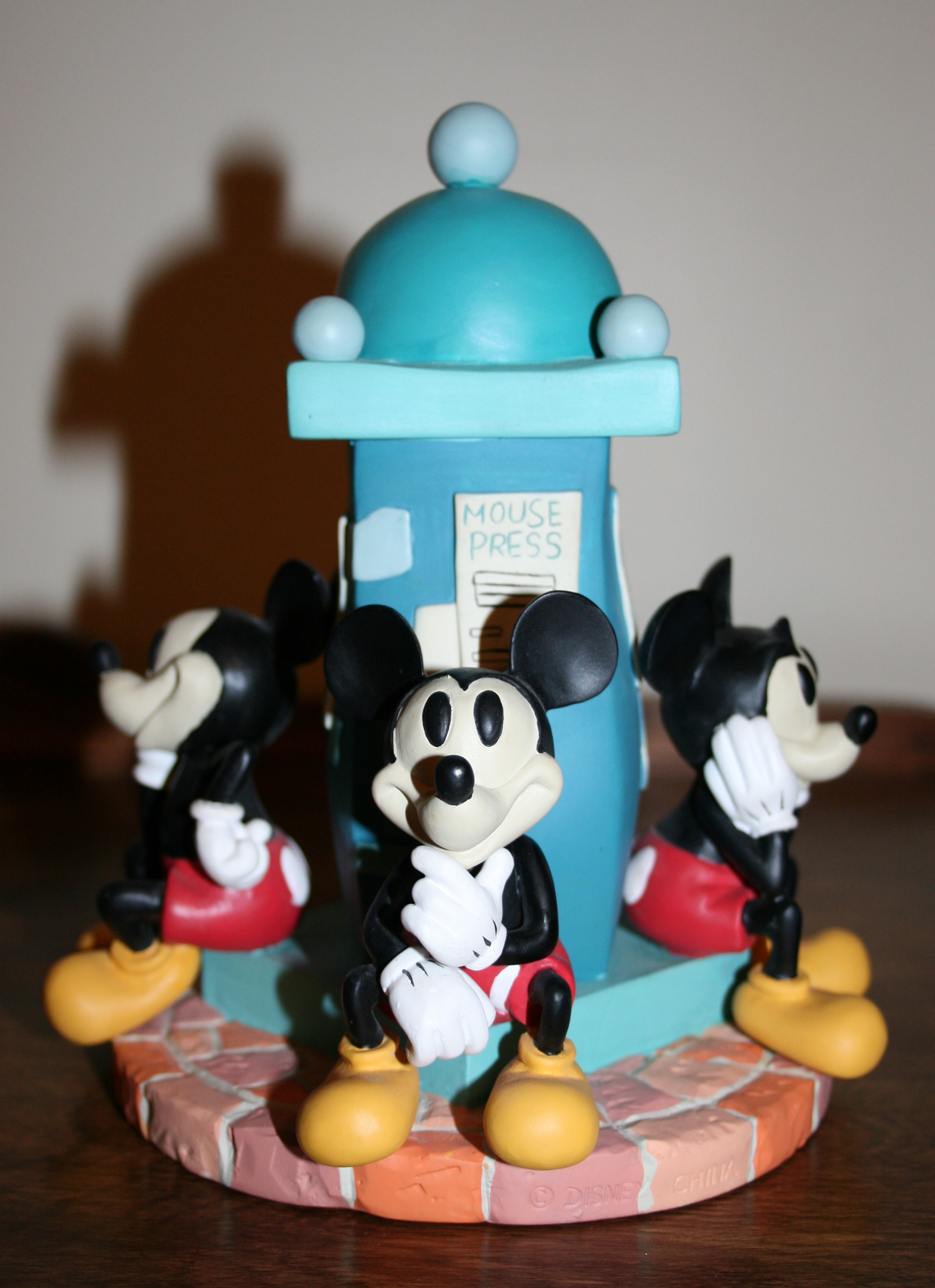 This beautiful piece is branded Euro Disney (pre-Disneyland Paris) and features not one, but four Mickey figures. We aren’t told what he is waiting for, but I’m guessing it’s for Minnie!