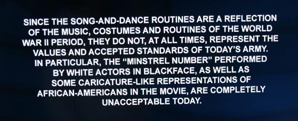 There were actual African-American singers/dancers in this picture, but they were used in a typically exaggerated way for comic relief. However, a Fun Fact: The Army was still segregated at this time (WWII) and so the production of this film, with a predominantly all-army cast, was the only integrated deployment of men during the war.