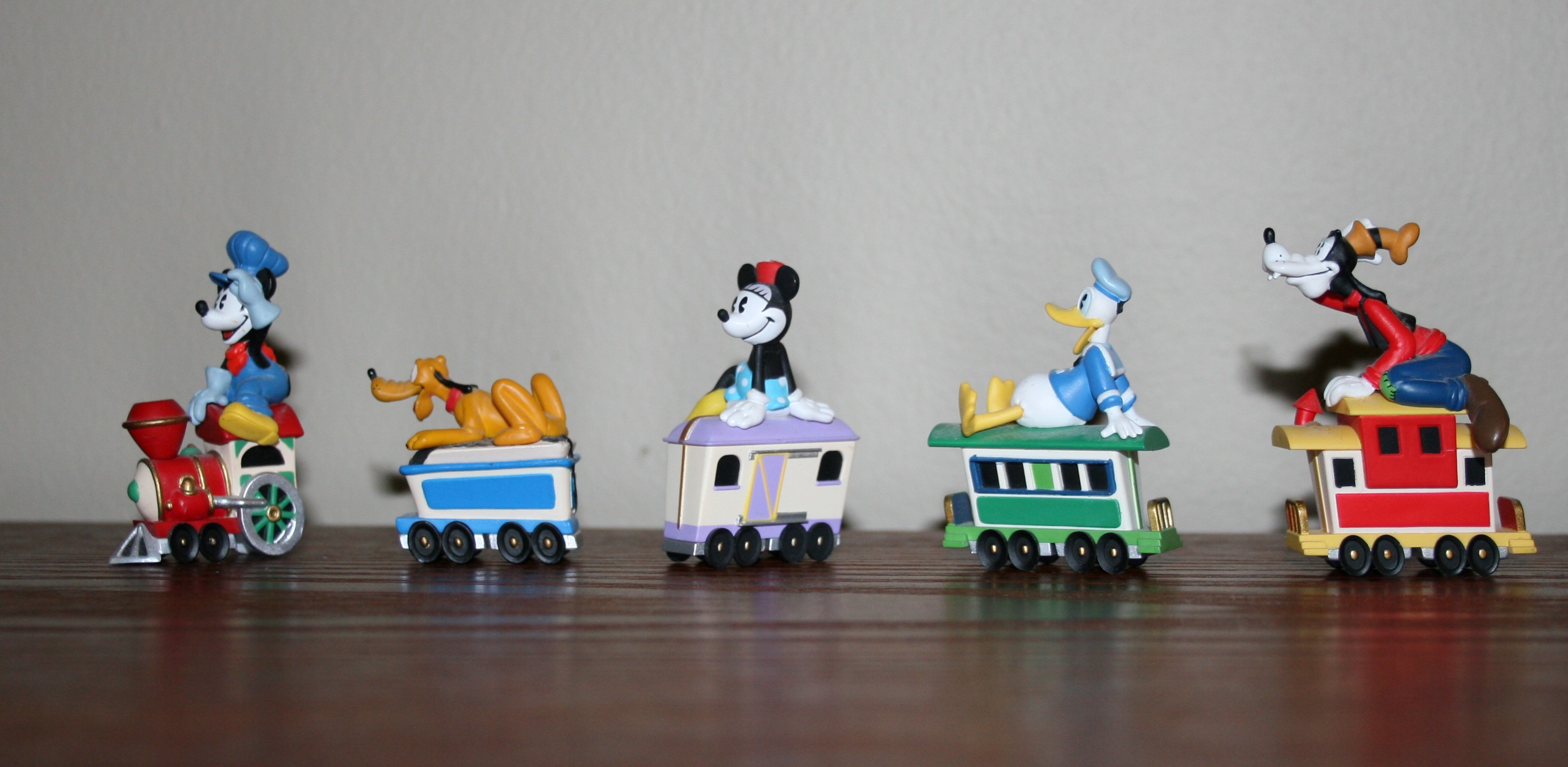 I found this mini train set at a flea market for only $8 CAN. They may have been a simple display item or more likely a cake topper set.