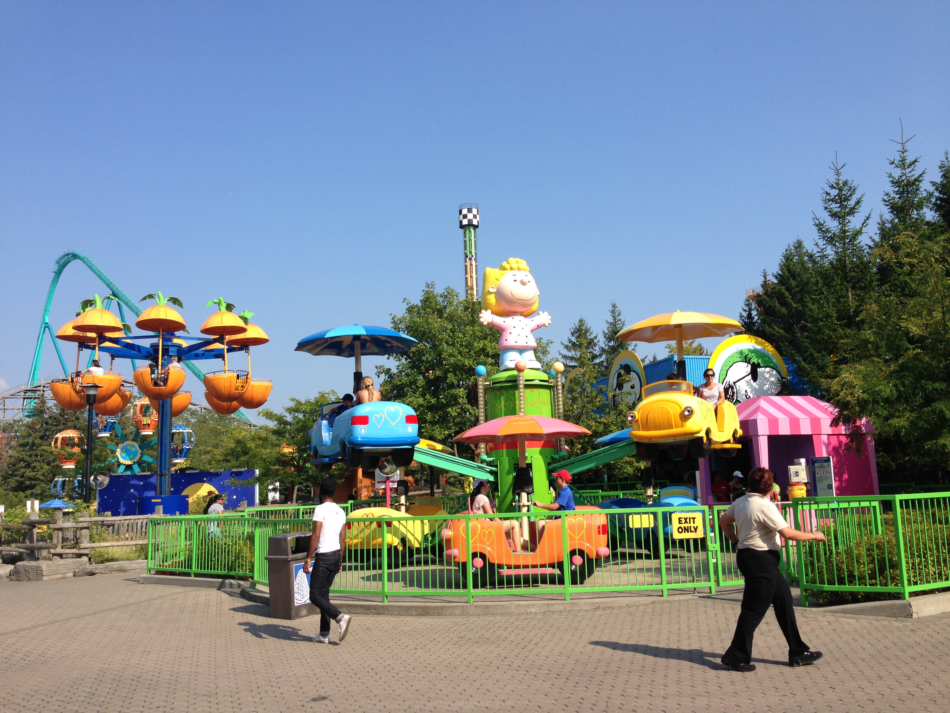 And keep in mind that Canada’s Wonderland has the rights to use the Peanuts cast of characters. So you’ll see Snoopy and the gang around the park and in some shows. And many of the children’s rides are themed to one of the Peanuts gang.