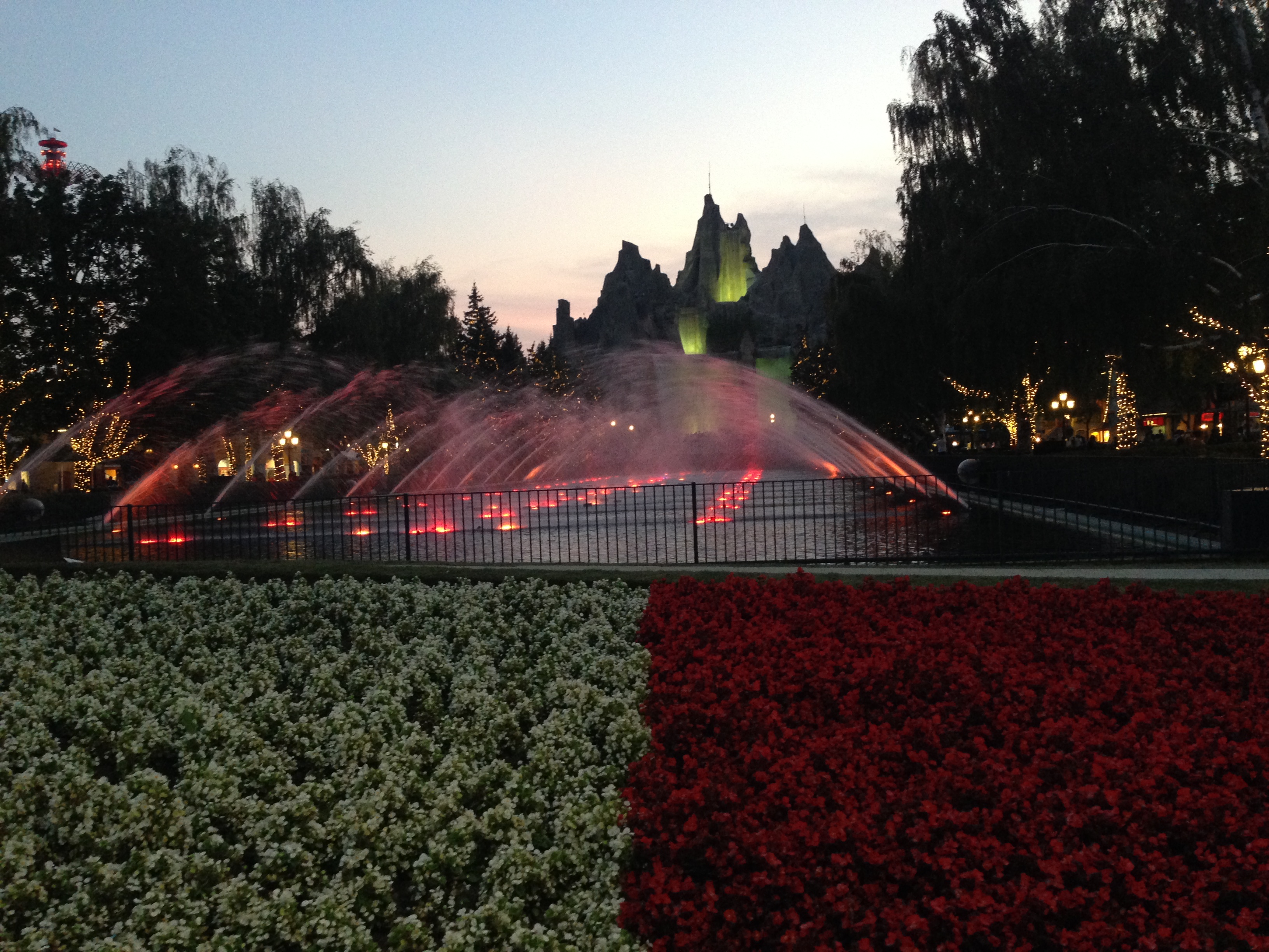 As the sun sets, the lights come on and the Royal Fountain is lit up with colored lights. This looks beautiful and makes a nice way to end the day.
