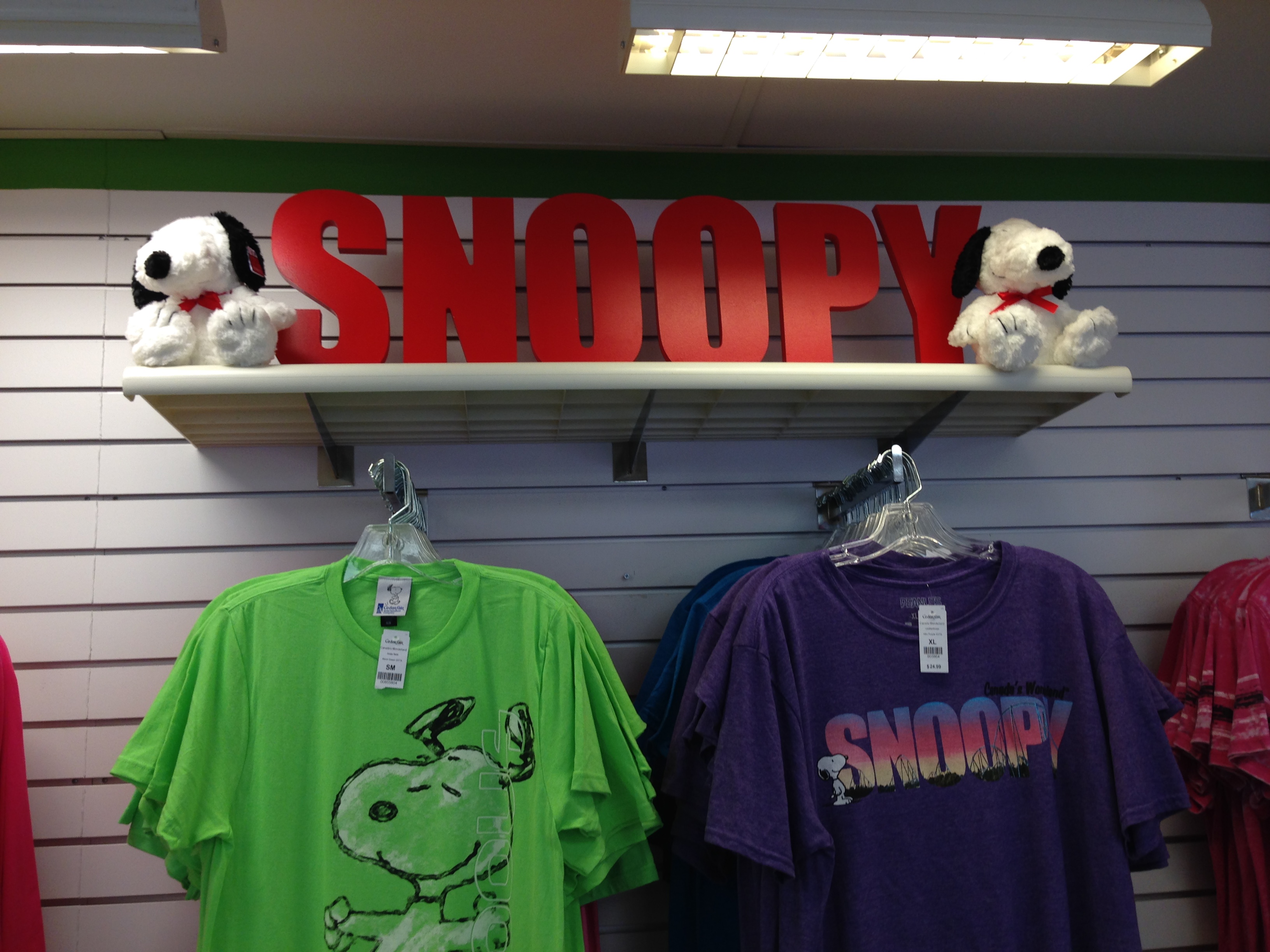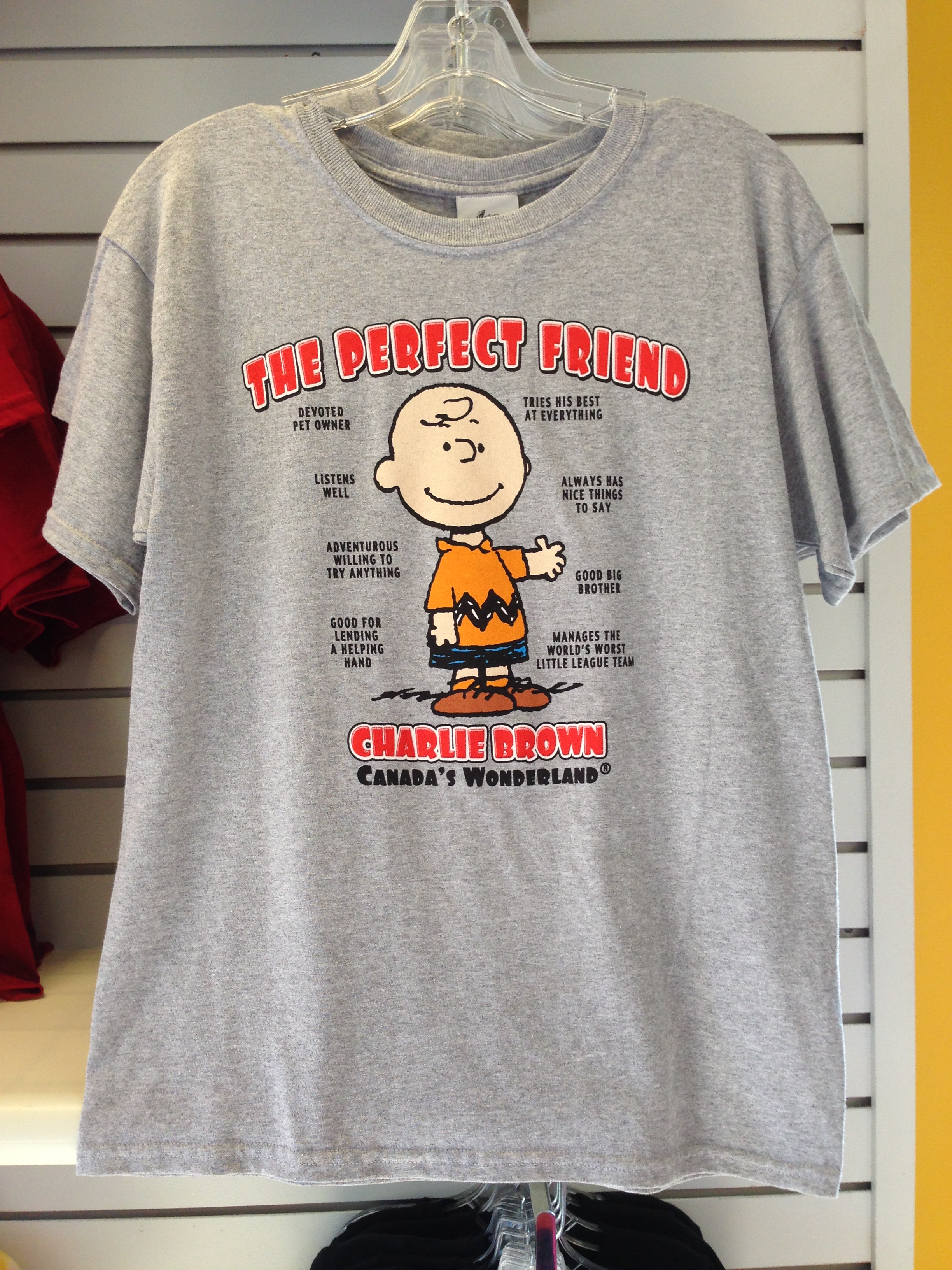 Canada’s Wonderland also sells some Disney product and other basic stuff you can get anywhere. But they do carry the licensing for Charles M. Schulz’s Peanuts characters. So you can get ‘Snoopy’ and ‘Canada’s Wonderland’ on the same t-shirt.