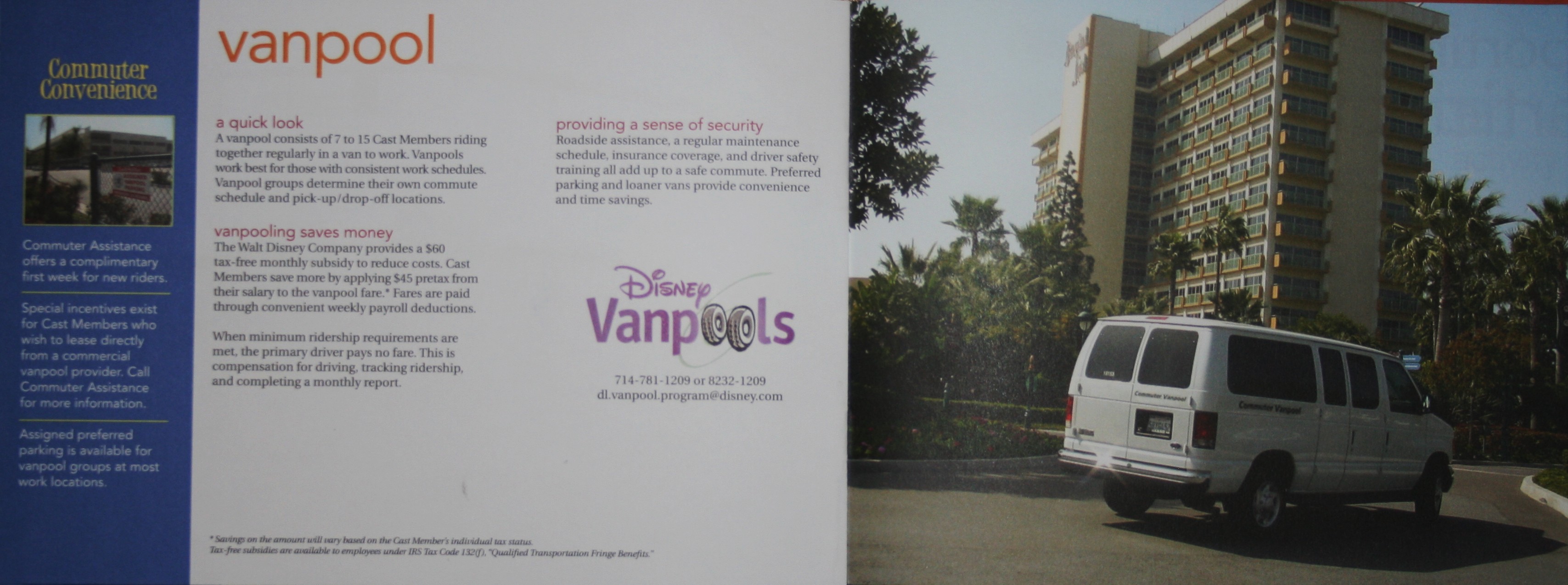 A team of transit planning specialists were available (and I can only assume they still are, if this program is still operative today) to help Cast Members plan their commutes to and from work each shift period. Let’s look at the five avenues available: