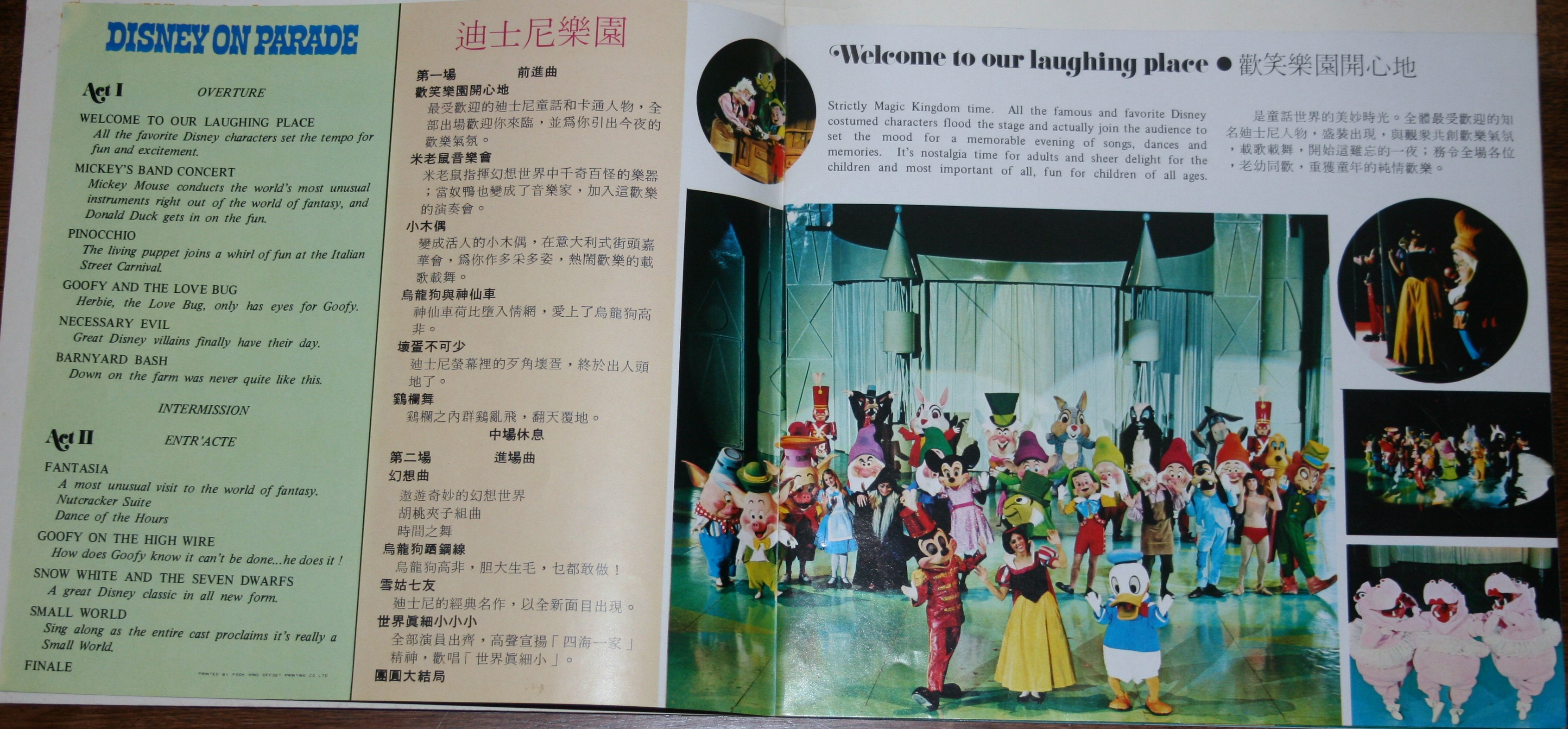 Disney On Parade was not a parade, nor was it on ice, but on a stage. Snow White and the Seven Dwarfs were the hosts and main stars of the show, with many Disney characters joining in on the fun.