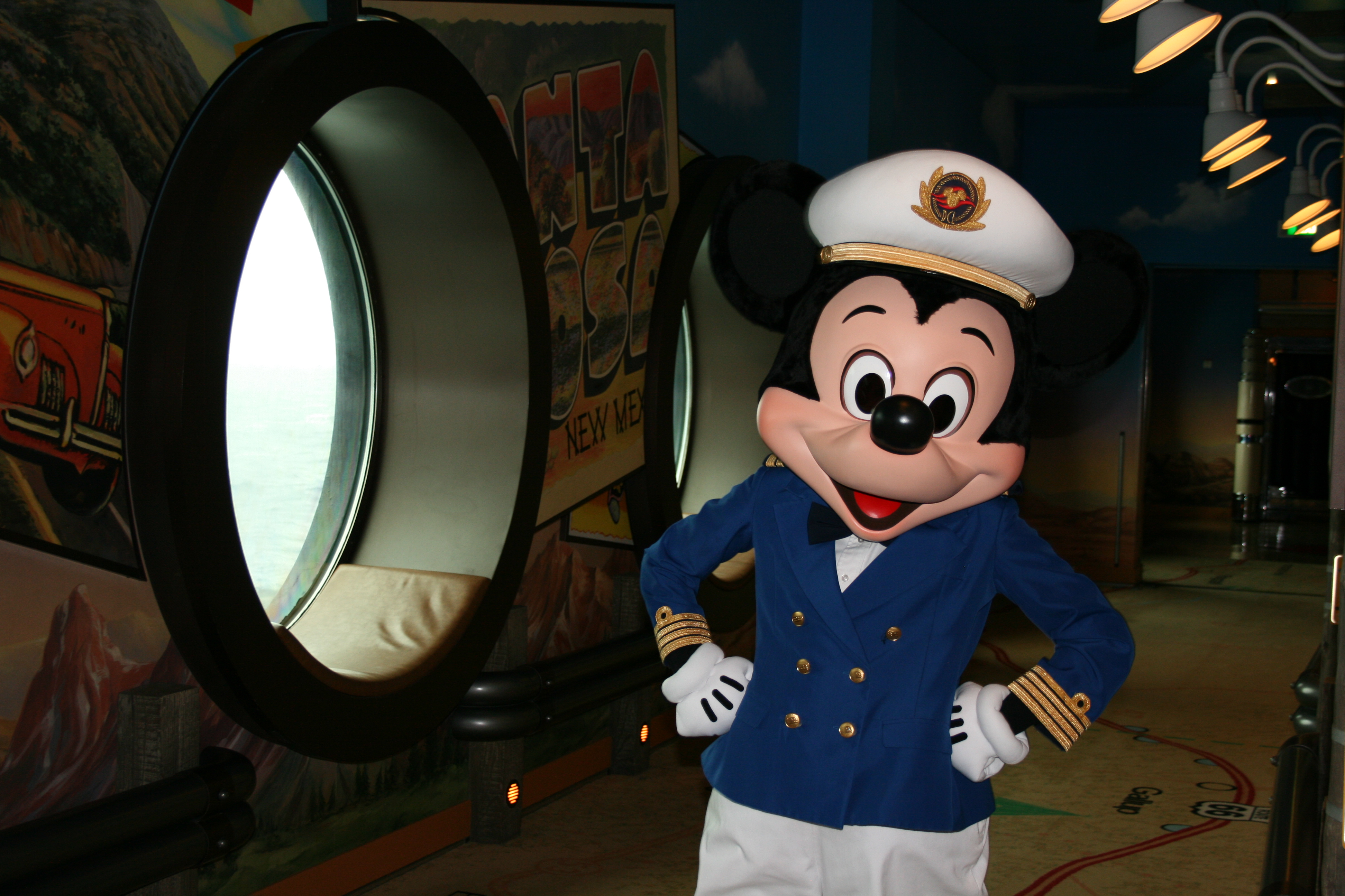 These images all-but answer our question as to the size of an outer-hull porthole. But let’s look at two more pictures to seal the deal. First, we have Captain Mickey posing beside one such porthole: