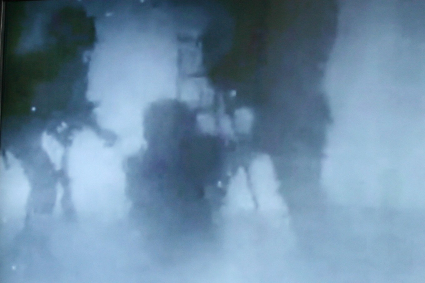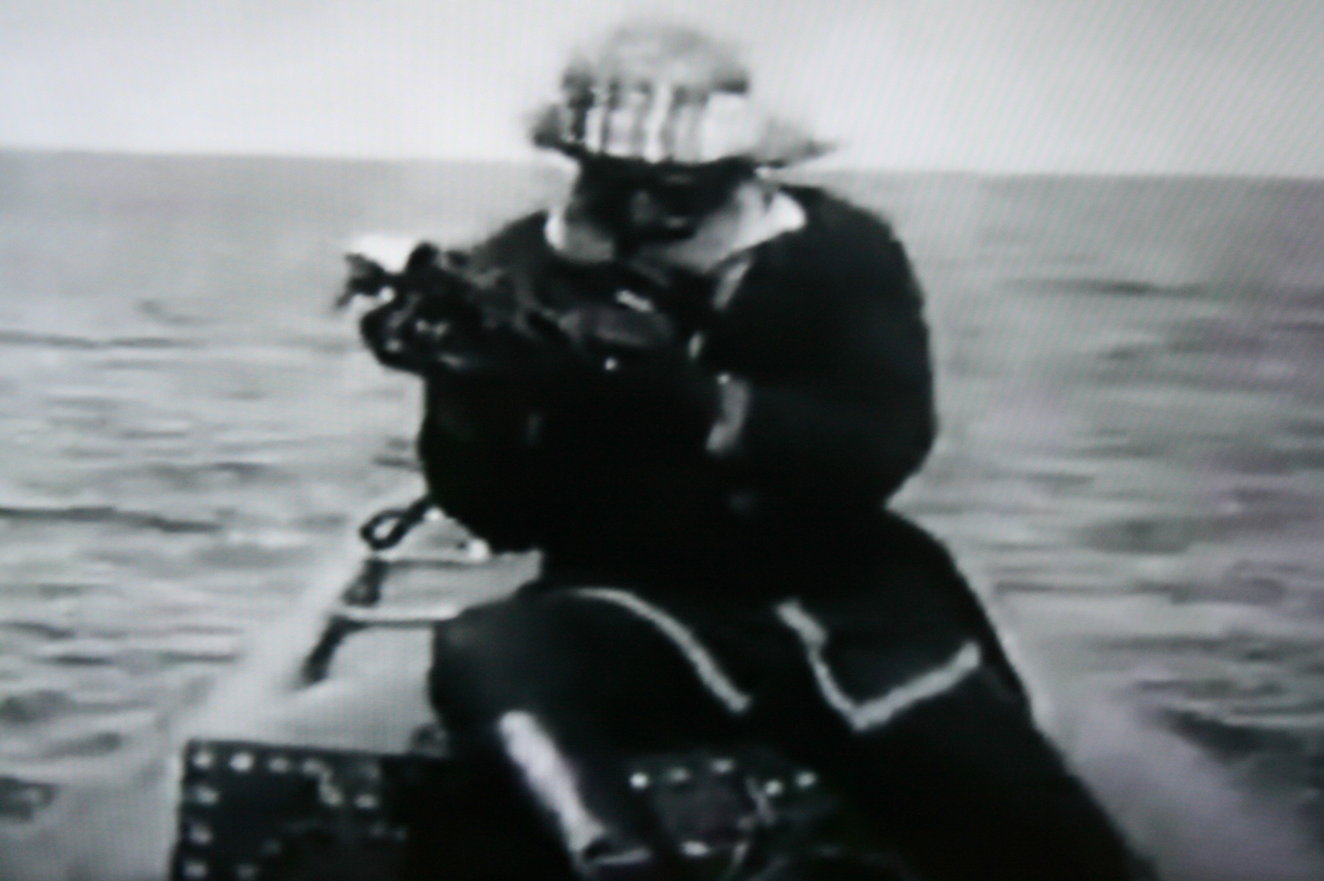 Looking like a blurry picture of the Loch Ness Monster, this image could be of almost any modern-day submarine. There was no effort to make the craft look futuristic.