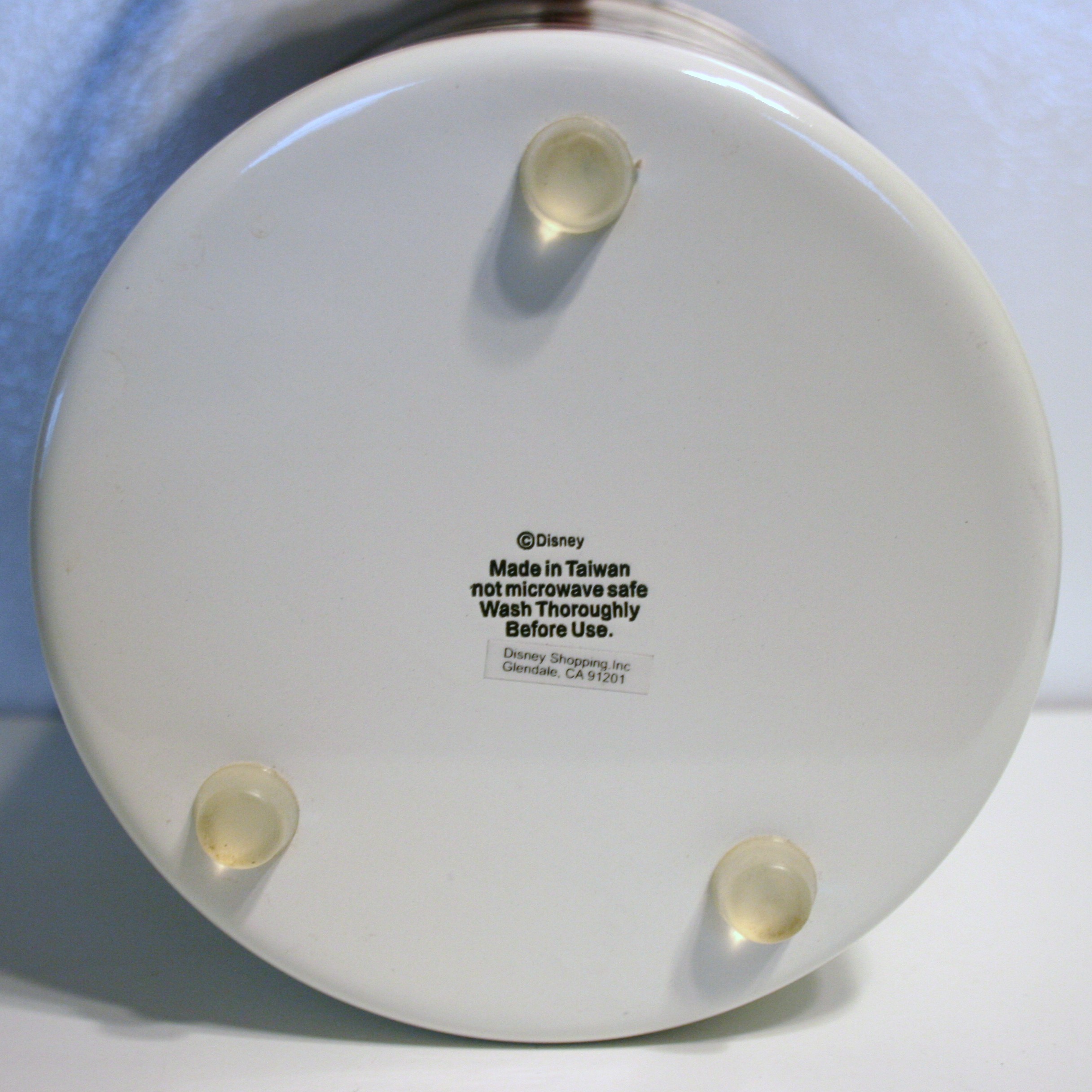 This is a fairly heavy piece. Presumably it is metal with a ceramic casing inside and out. It is finished off with a metal ring around the rim. It also has three rubberized feet: