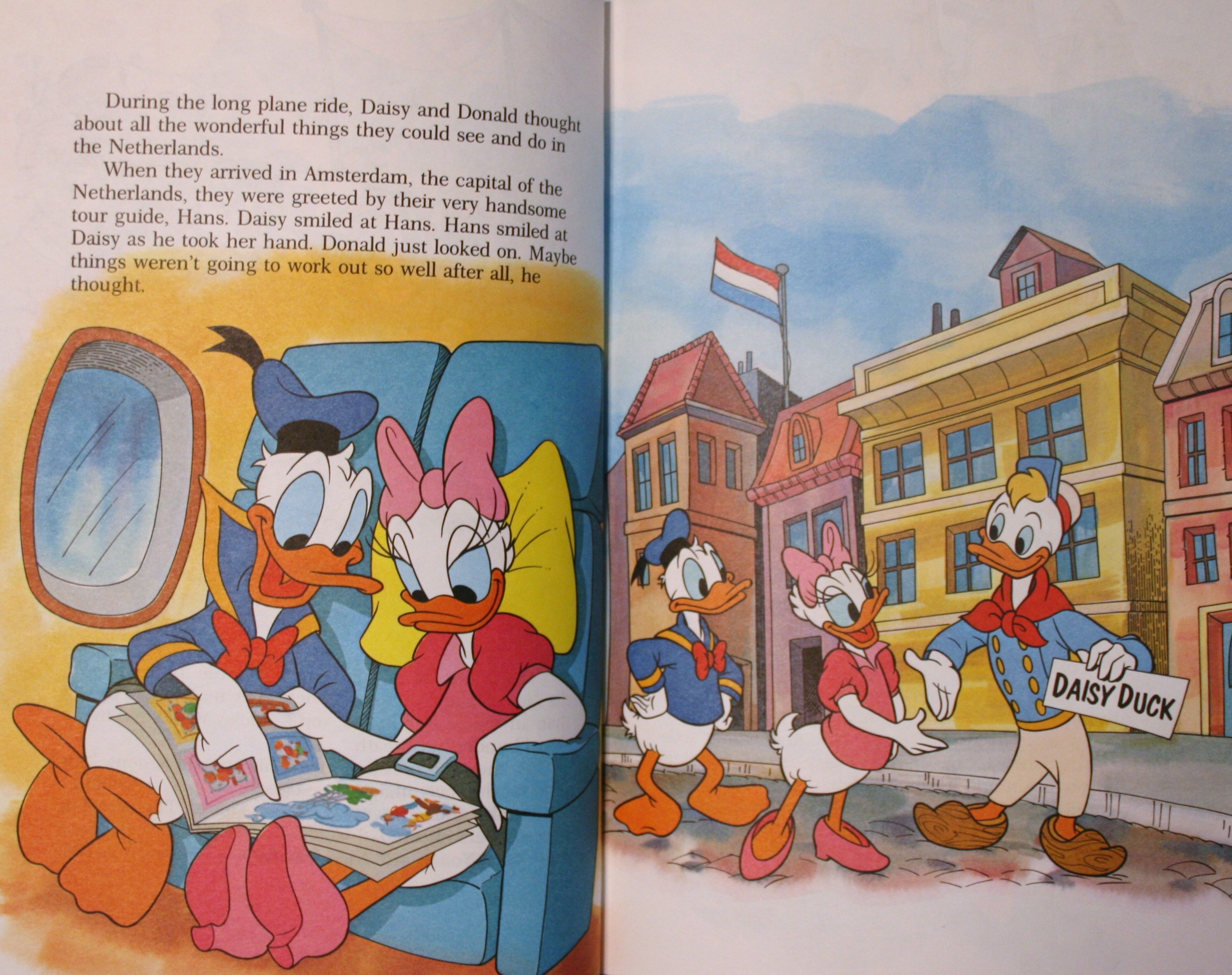 Once there, a handsome tour guide meets them. Daisy is smitten and Donald is jealous! Hans, the tour guide, takes them on a journey throughout the Netherlands.