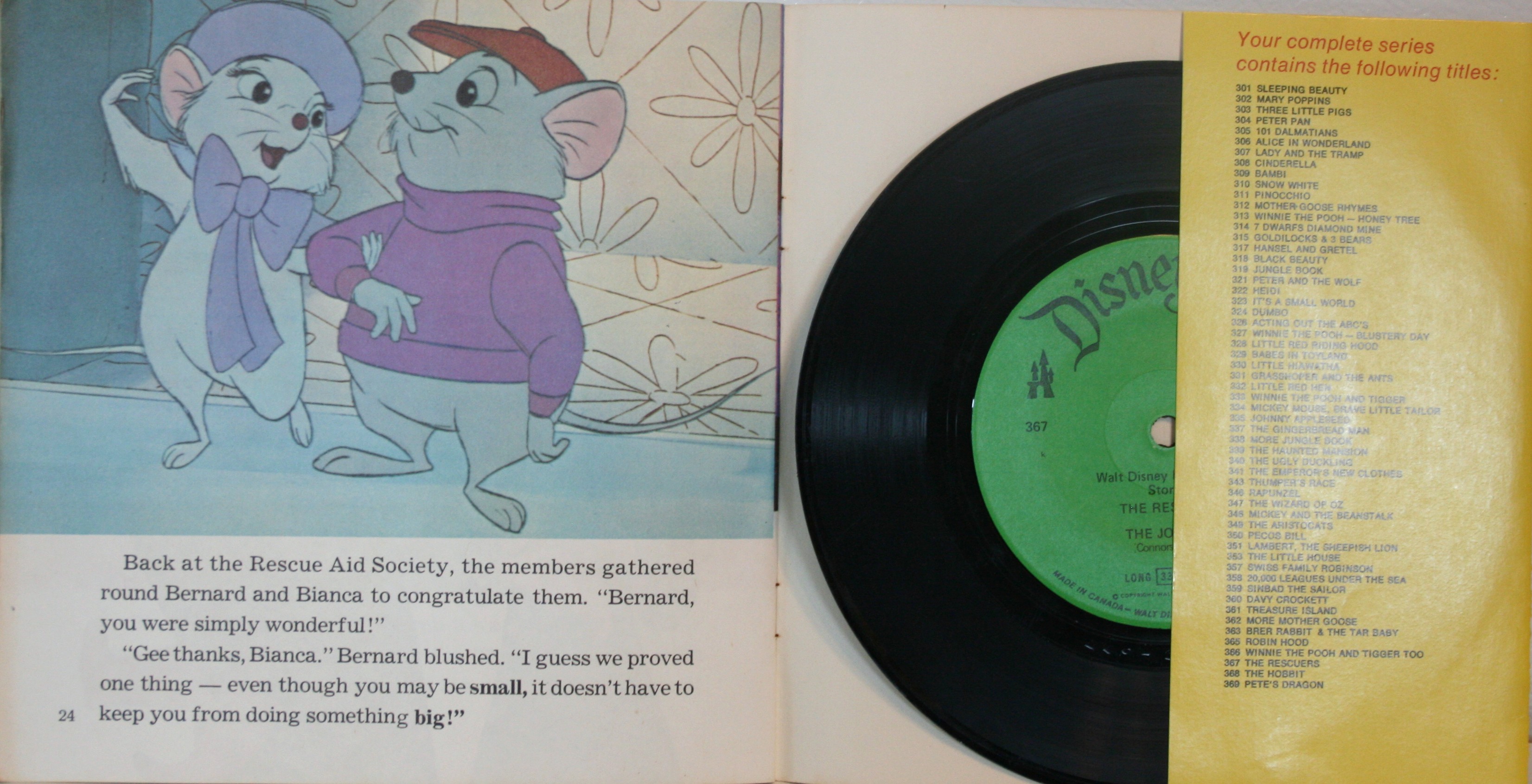 The coloring page is now gone with the extra page being used to finish the story. As with most record/books, the original story is pretty much in tact. It also includes two songs from the film: ‘The Phony King of England’ and ‘Oo-De-Lally’.