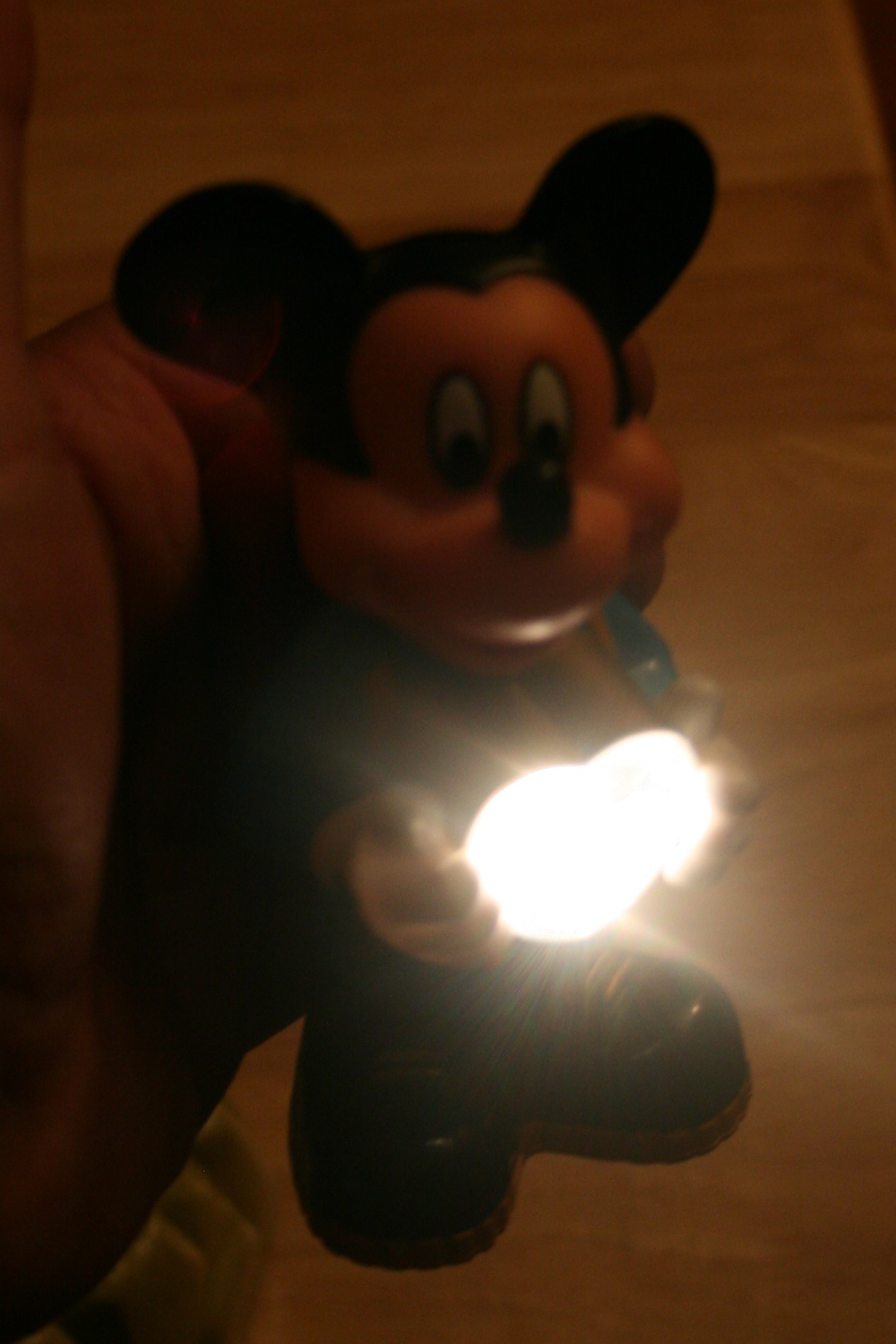 As you can see, Mickey can be lifted off the base and used for a flashlight for those late visits to the bathroom. Or fridge. Hey, I’m not judging!