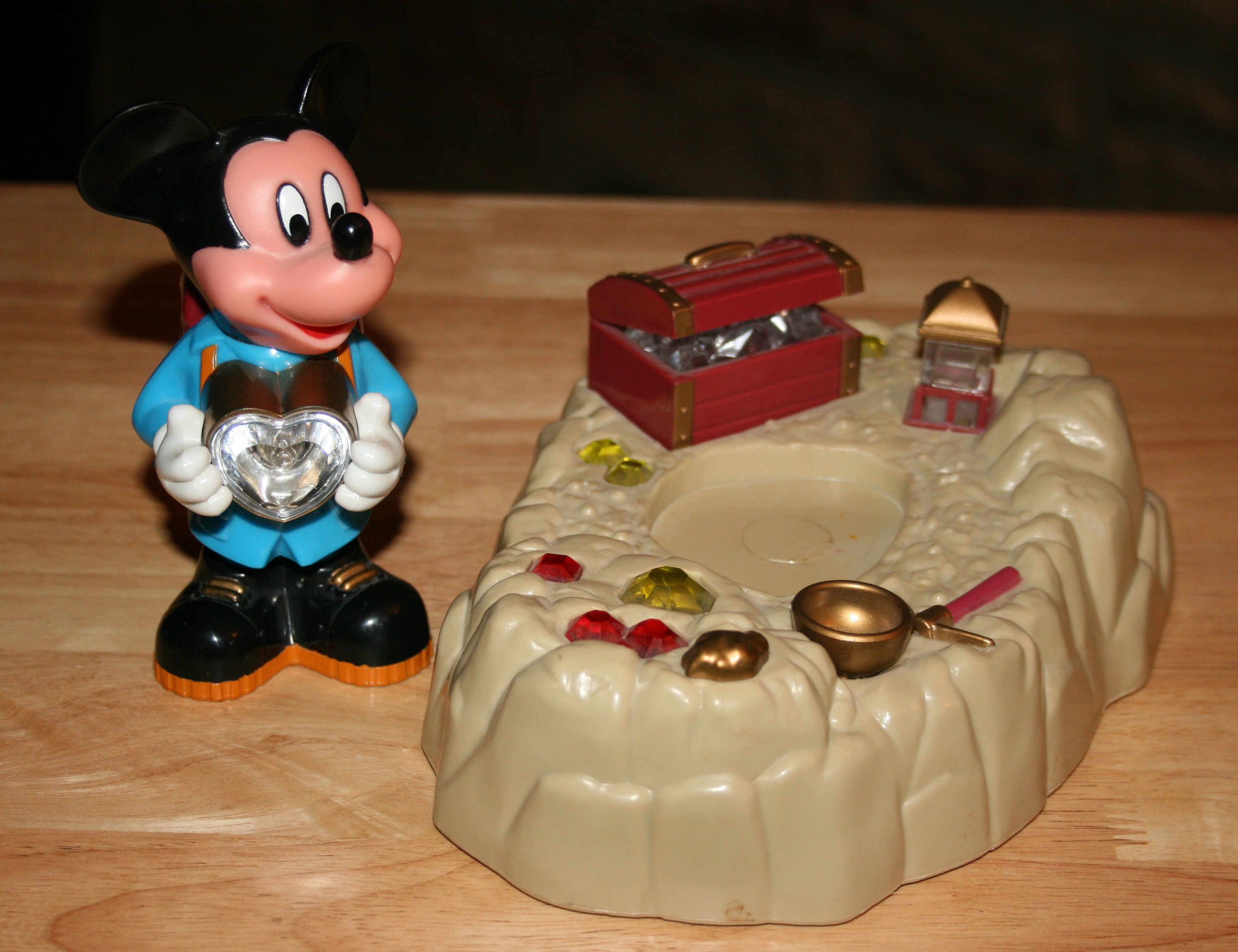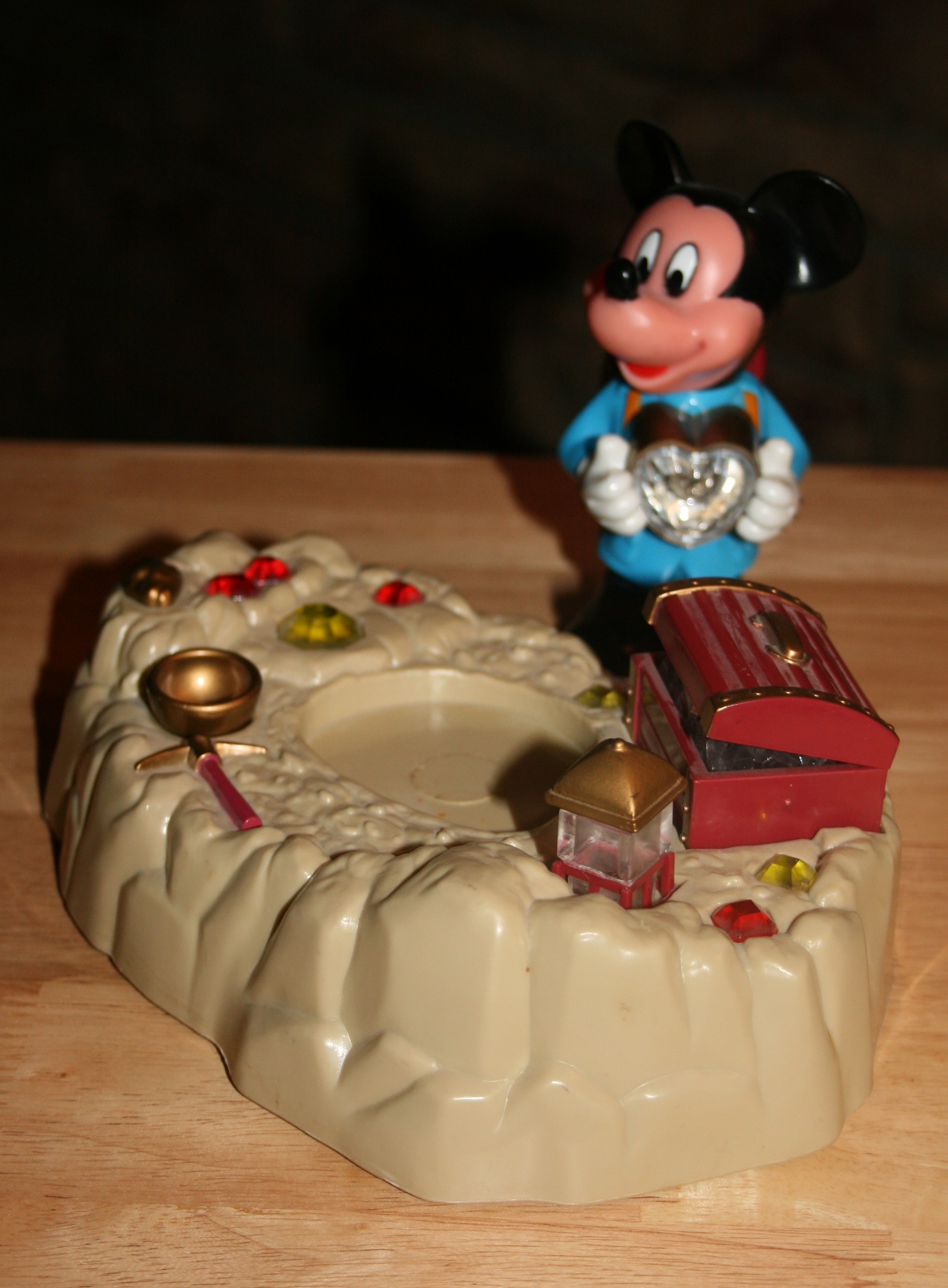 Here is one last shot of Prospector Mickey on his base, tipped back just enough to light up his heart-shaped lantern: