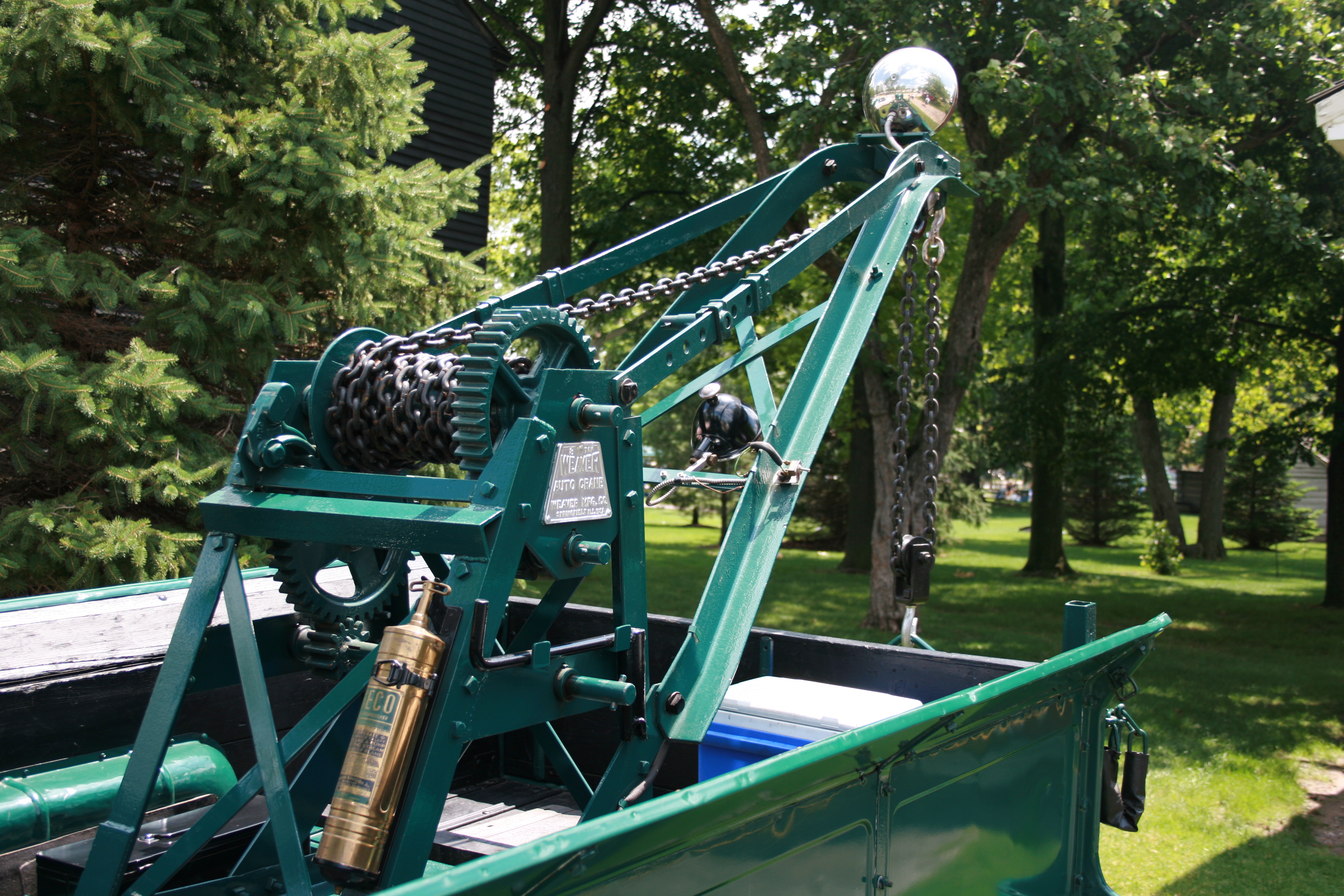 The owner of this vintage tow truck did a nice job of restoring her. The mechanical aspects of the towing apparatus make for a good shot! Although I don’t think the plastic cooler is period specific.