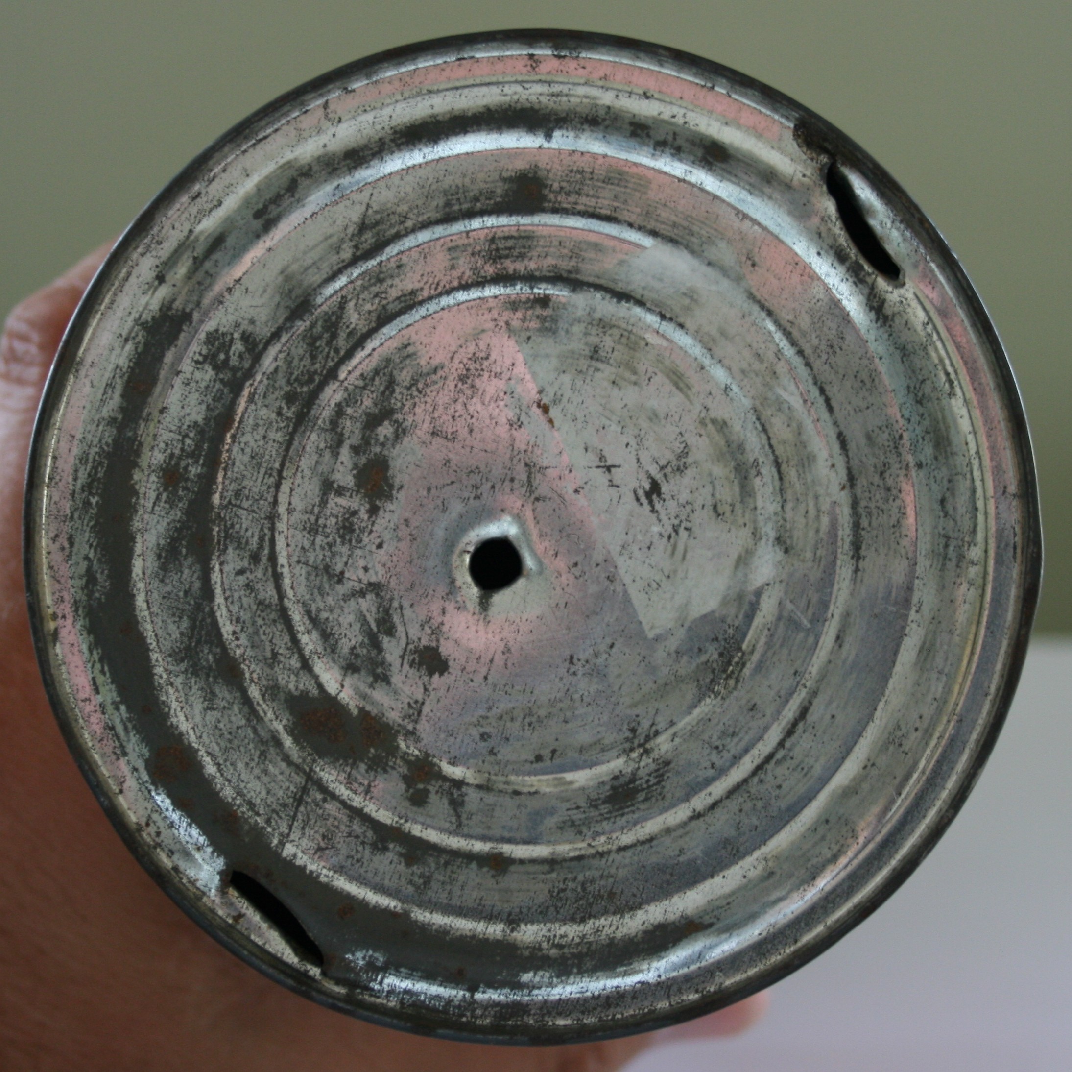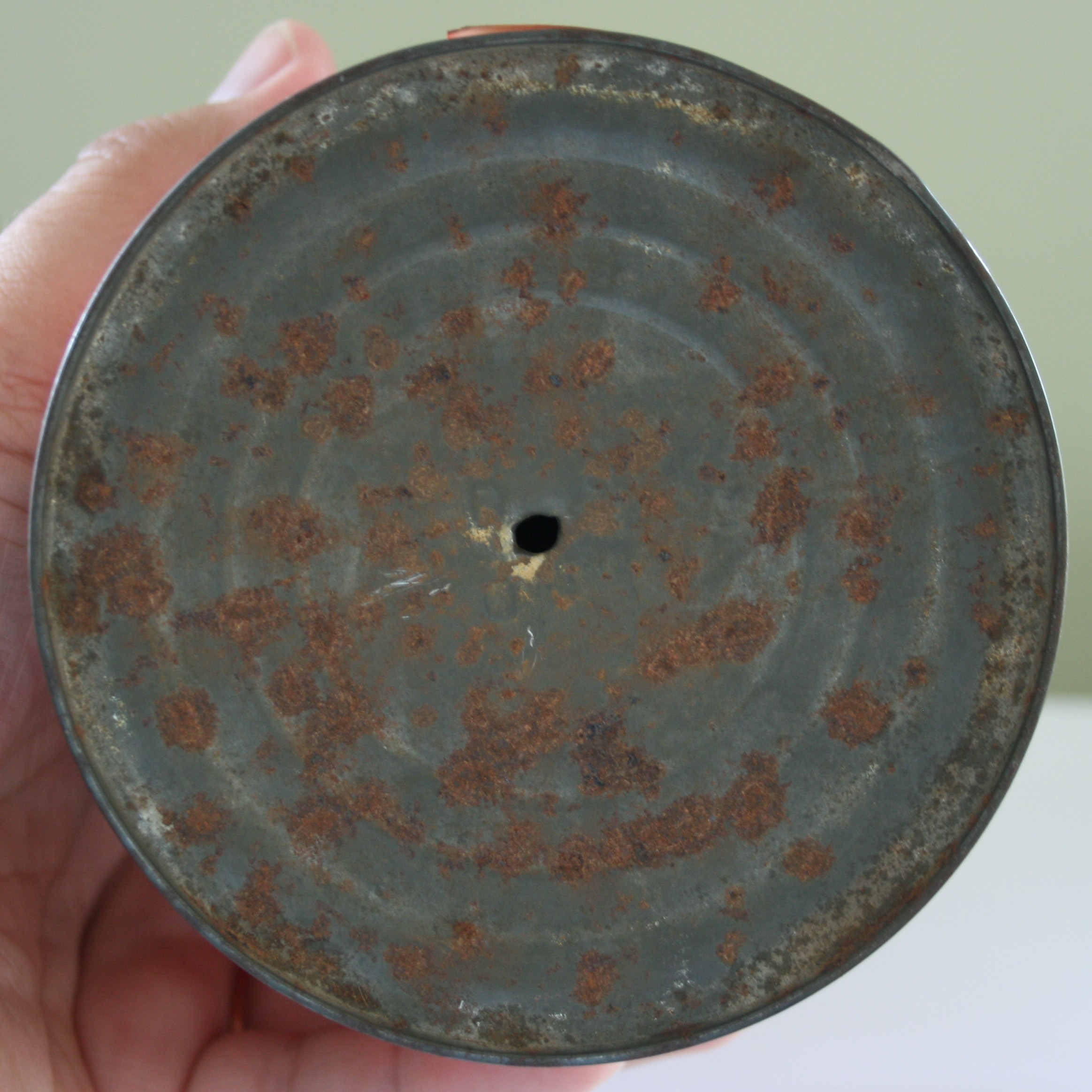 There are some random production letters on the bottom of the can but I doubt they would help with our attempts to date the can unless we could find documentation from the plant that recorded them and their meaning. Not going to happen!