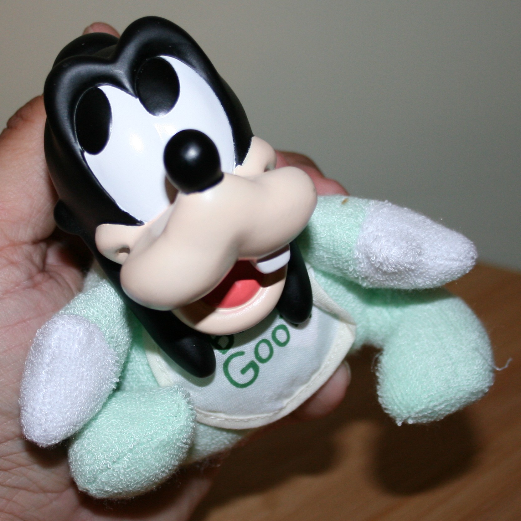 This line of Disney-related dolls was released between 1998 and 2001. I don’t know the exact number of babies in the batch but I do know that dolls with Mickey and Minnie were released in 1998, dolls with Goofy (shown in this post), Donald, Daisy, and Pluto were released in 1999.
