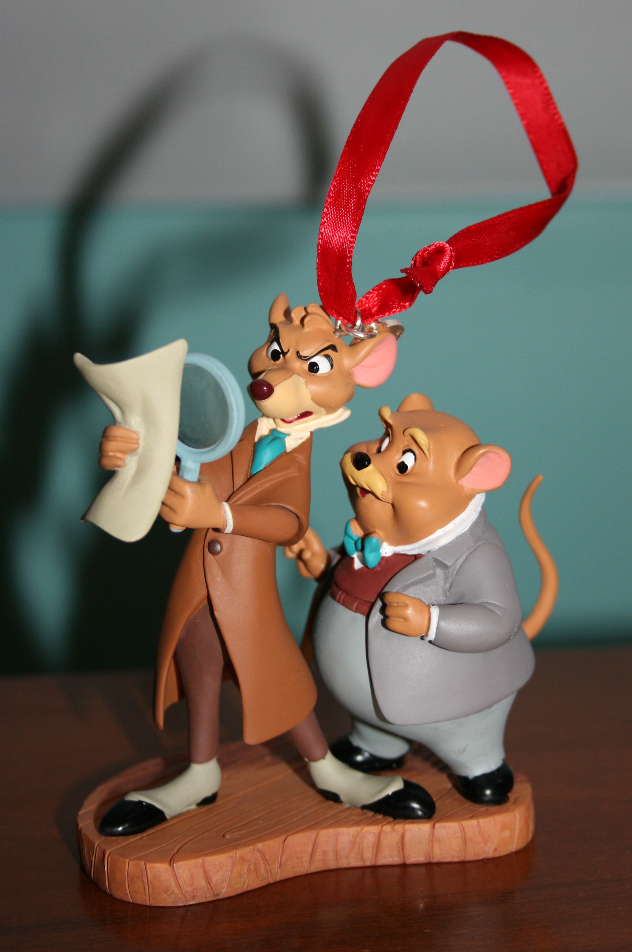 In any case, Basil will get something from it anyway. The Disney Store is now selling a superior line of ornaments. The level of detail is magnificent! For an example, look at Dr. Dawson’s butt in the picture above. No, go ahead. He won’t mind! Notice the hole in his britches that allows his tail to protrude. They didn’t just glue the tail on the back of the pants, but made a hole!