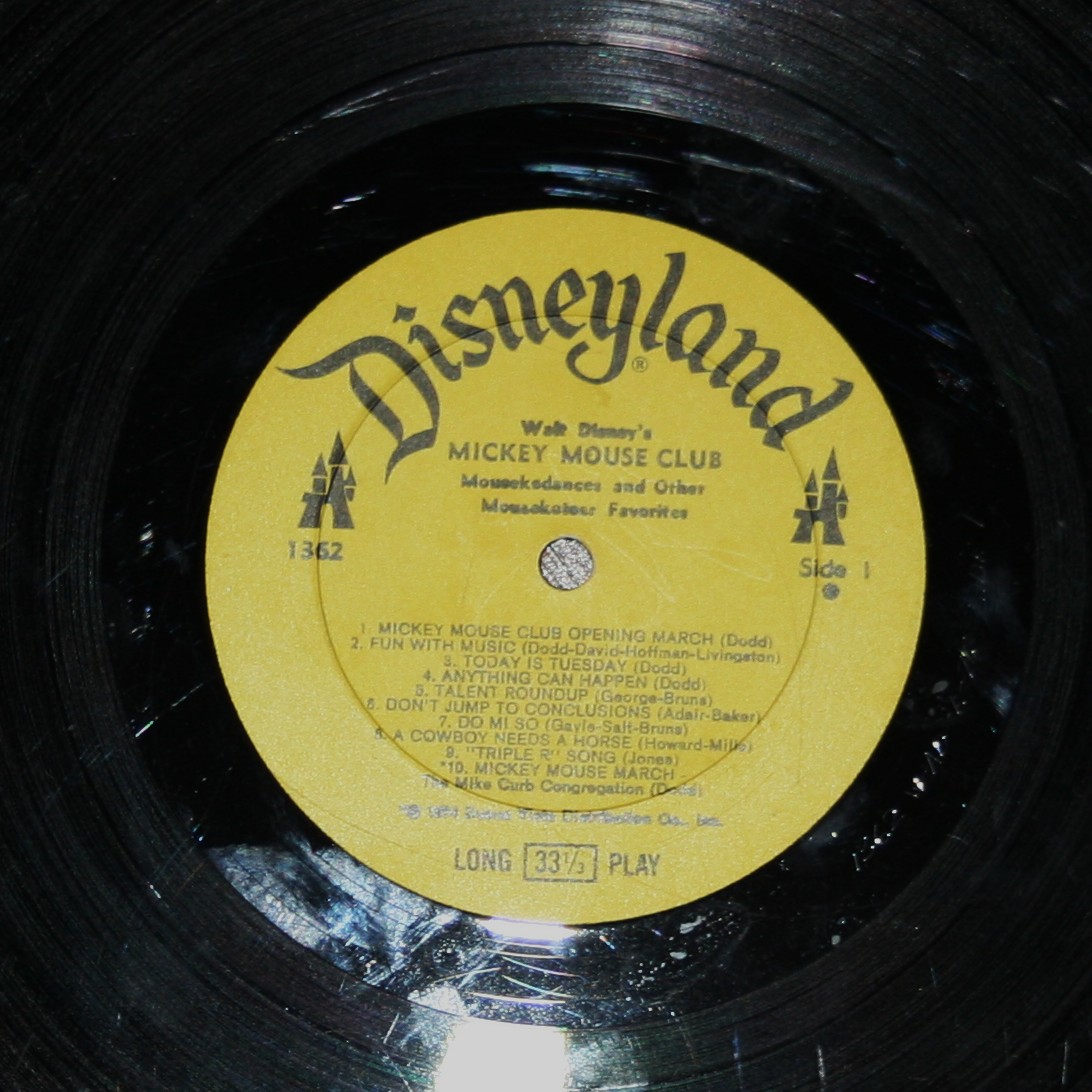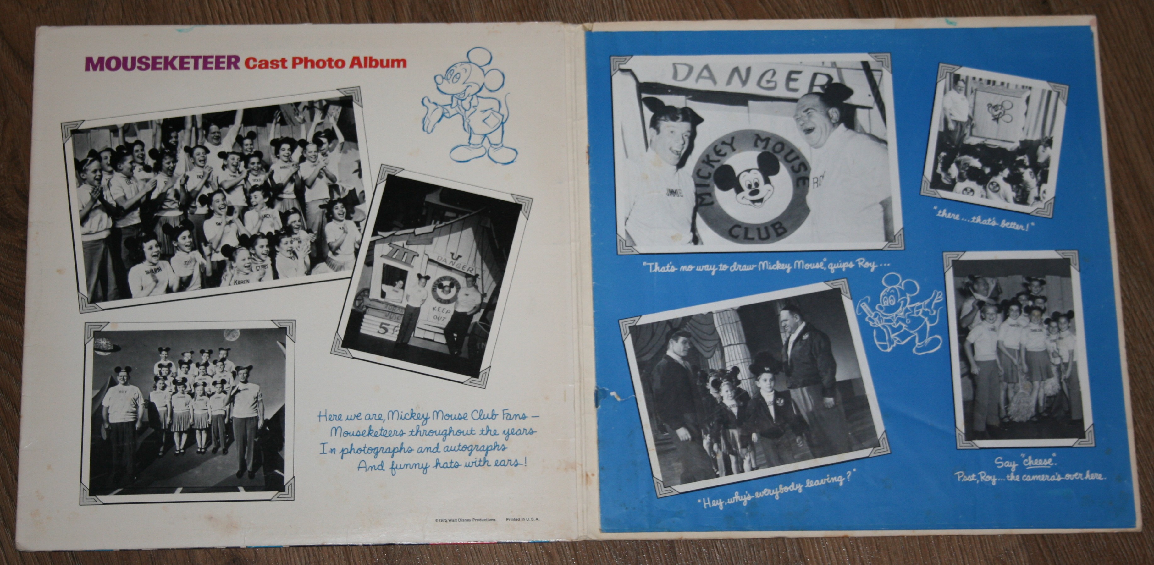 Unfortunately, I didn’t realize until I got this item home that it contained the wrong record inside. The LP that it has is still featuring the Mouseketeers but singing about the Mousekedances that were performed on the show. You can read the playlist by enlarging the album labels below: