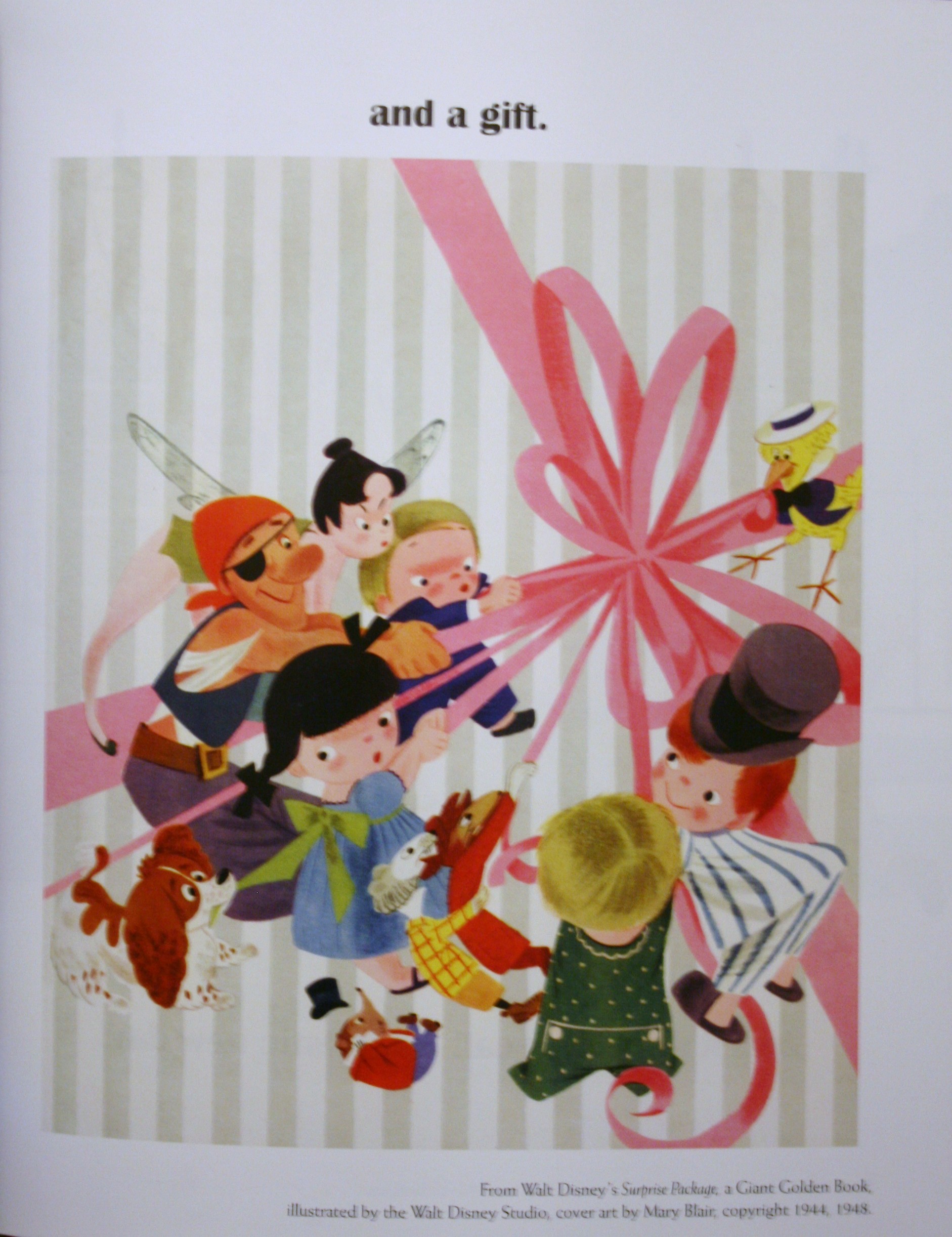 The two pictures above depict more obscure Disney references. On the left is Once Upon a Wintertime which was a segment in the 1948 Melody Time feature film. On the right is a cover picture from a Giant Golden Book published in 1944. Artwork was done by the great Mary Blair.