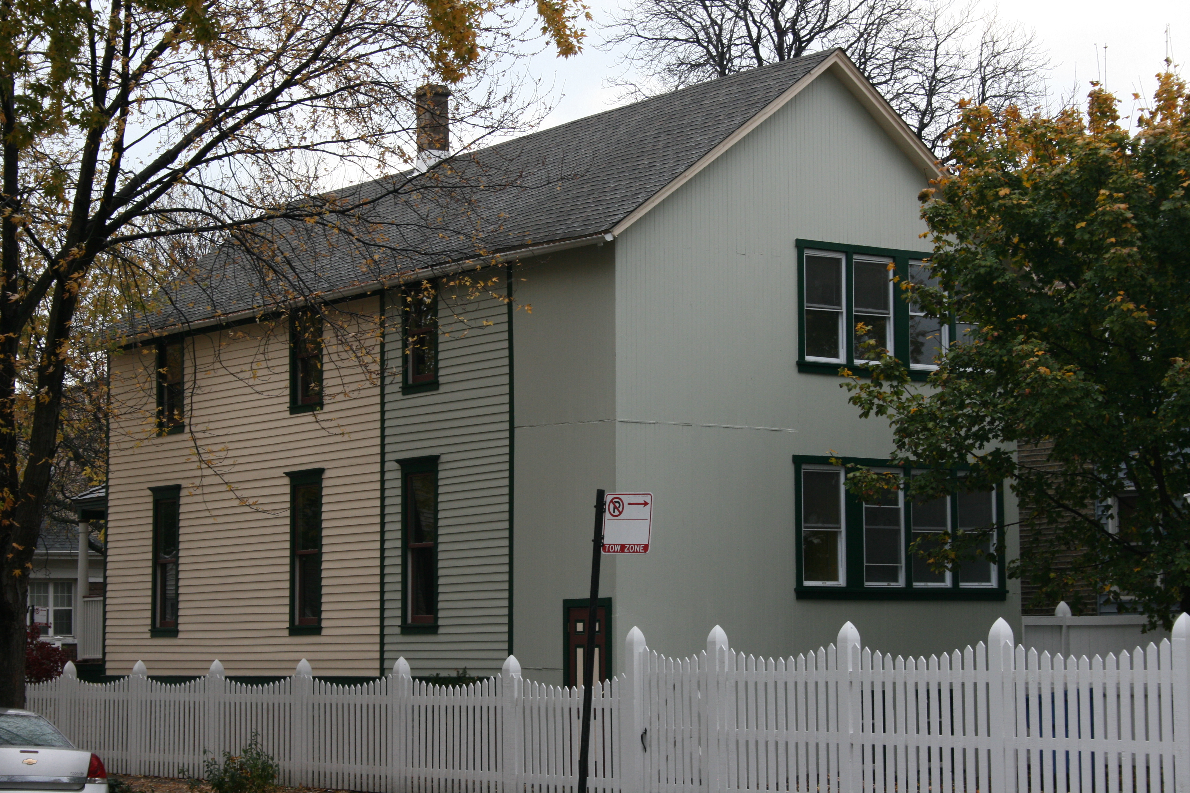 I noticed the two colors of siding and the different facing material on the rear. I read once that this building has had a few additions over the years. So it is likely that the yellow portion represents the original house built by Elias Disney and the rest representing subsequent renovation efforts.