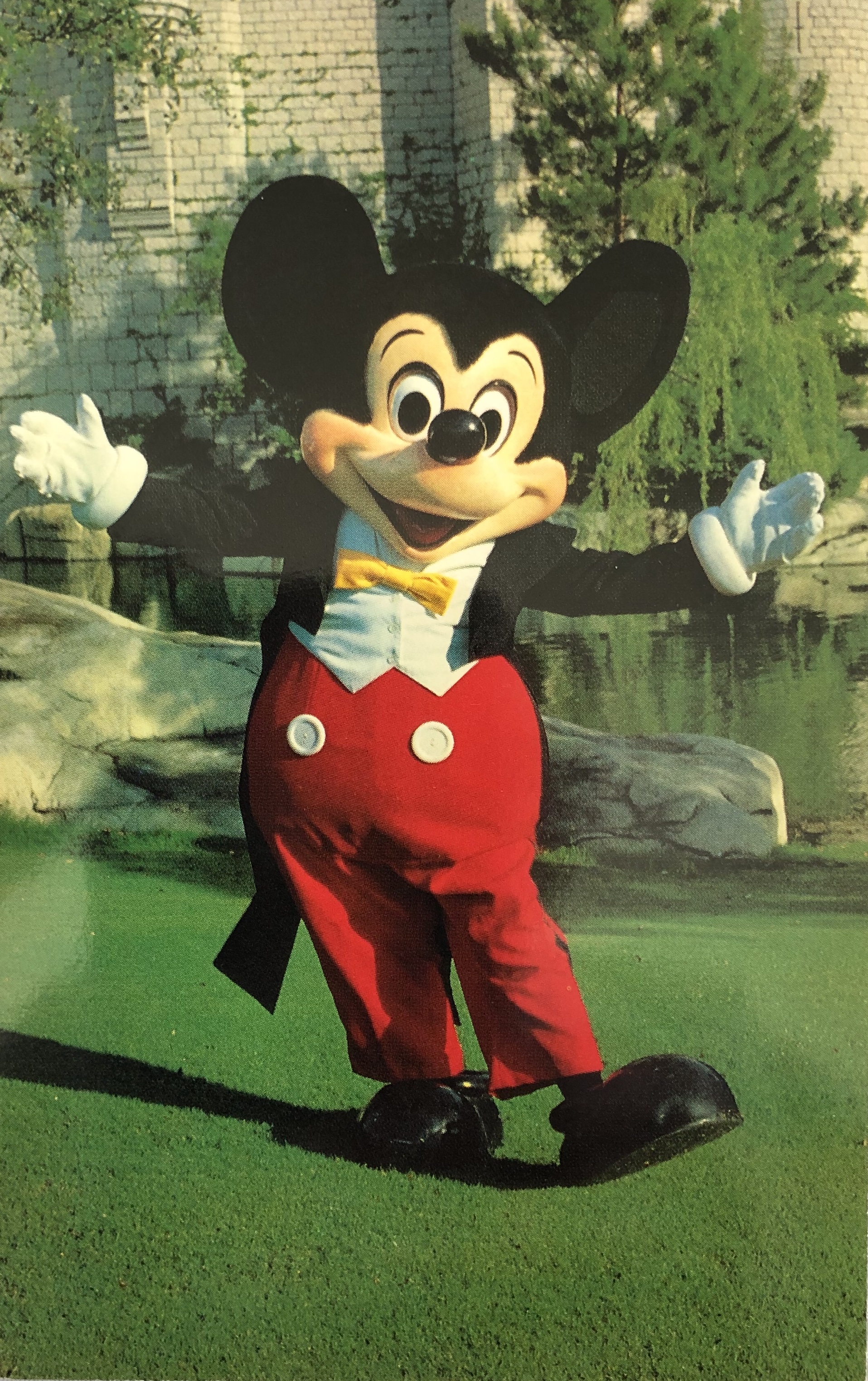 From the back of the card: “Mickey Mouse has been the beloved symbol of Disney entertainment for more than a half-century. Each day, he welcomes Magic Kingdom guests with plenty of “Mouse-ka-cheer.”