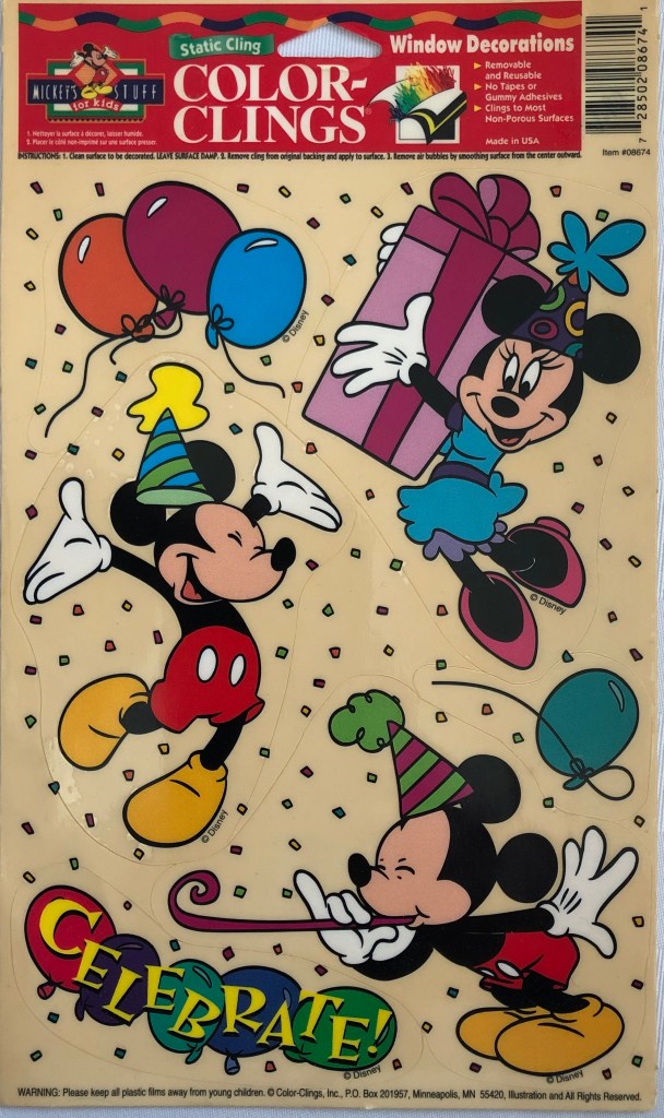 This time Mickey gets to double up. I guess Goofy and Donald weren’t in the party mood. But I hope these clings put you in the party mood! Just imagine where you could stick these fun not-just-for-kids clings.