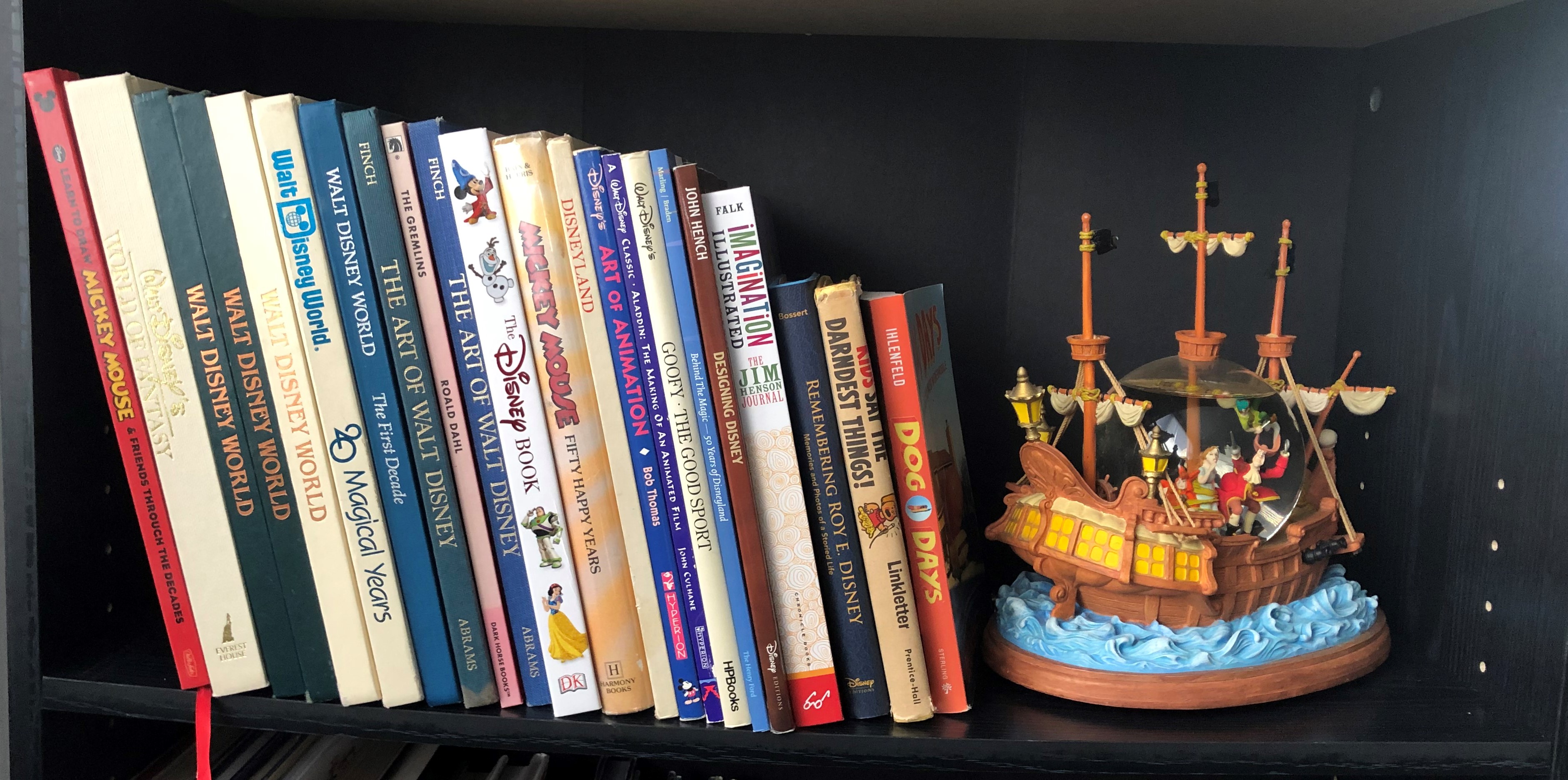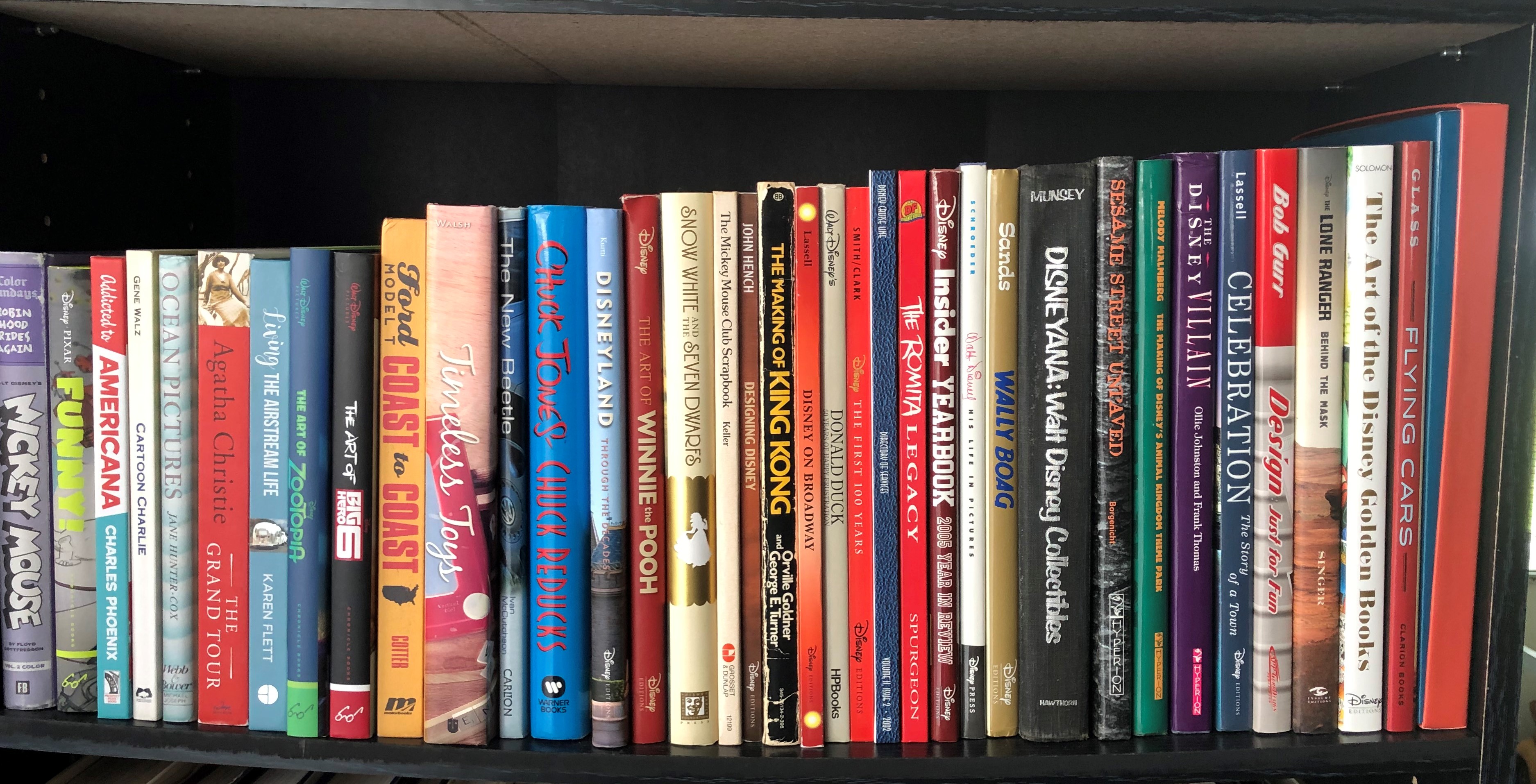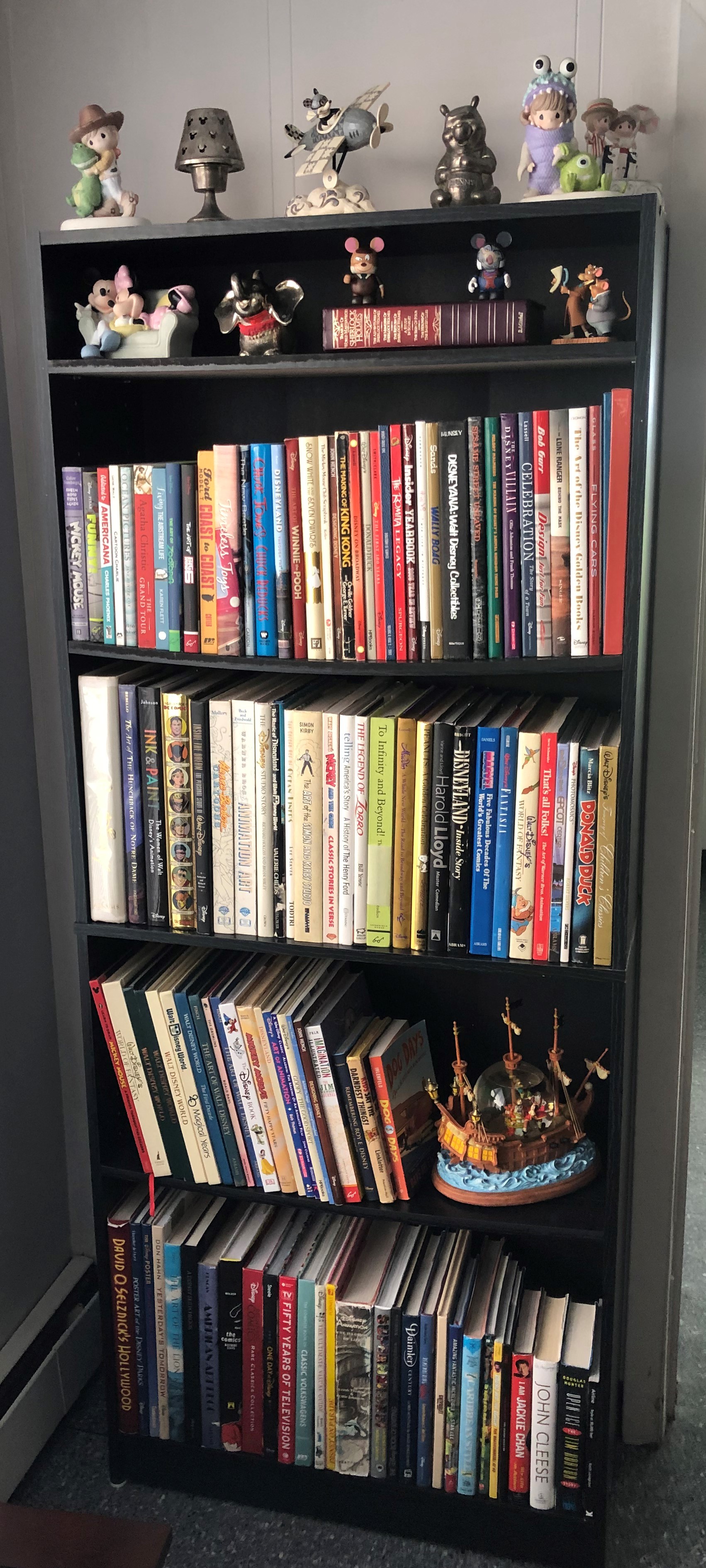 Fourth Shelf: Largely my Disney animation shelf with a few other offerings. Like ‘Imagination Illustrated’ about how the mind of Jim Henson worked. This book is filled with original sketches and story ideas about our beloved Muppets characters along with some strange stuff that never saw the light of day… until this book! ‘Dog Days’ follows the exploits of four college kids as they board a giant bus in the shape of a hotdog (the Wienermobile) and tour the United States giving out Oscar Mayer wieners aplenty. It’s as crazy and entertaining as you’d expect!