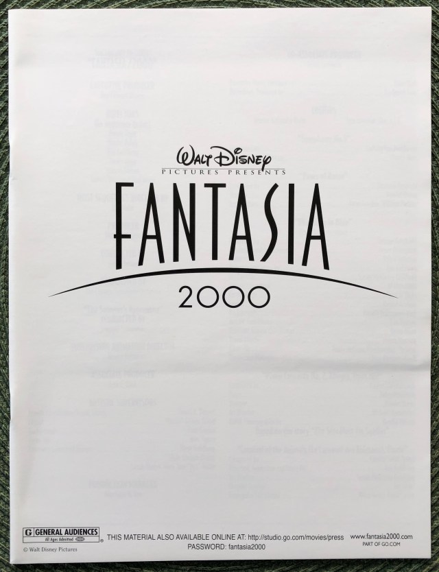 I picked up this Press Kit for Fantasia 2000 on eBay years ago and just recently found it again in my collection of ephemera.