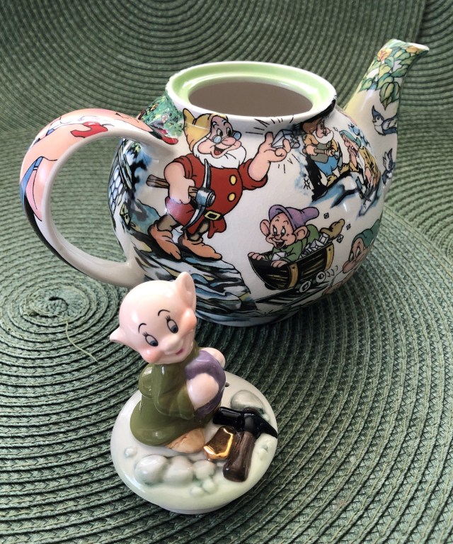 This Snow White teapot is called a Small Betty. Why, you ask? Well, a Small Betty is a two-cup teapot that’s usually round in shape with a standard spout and a large, simple handle. And now you know!