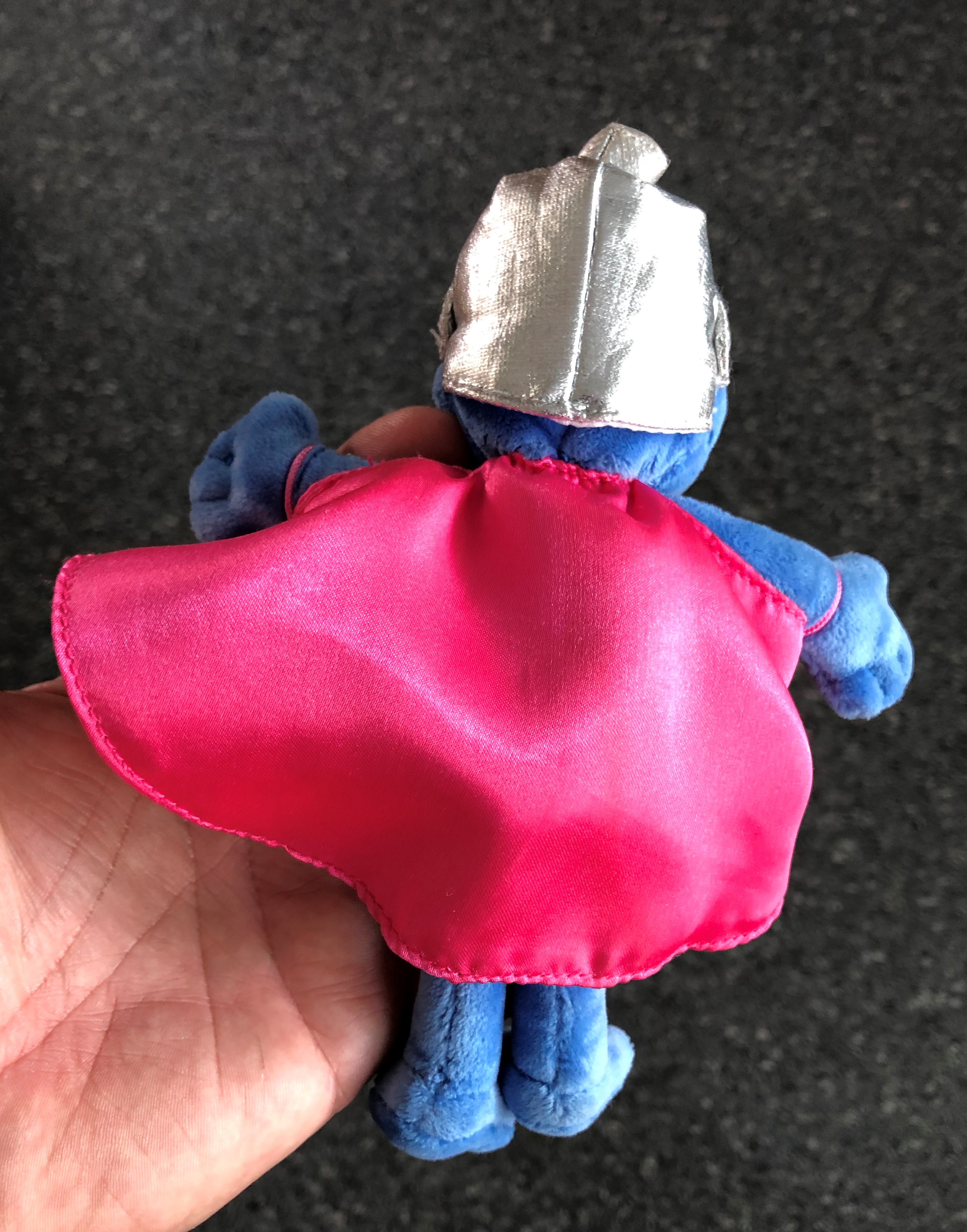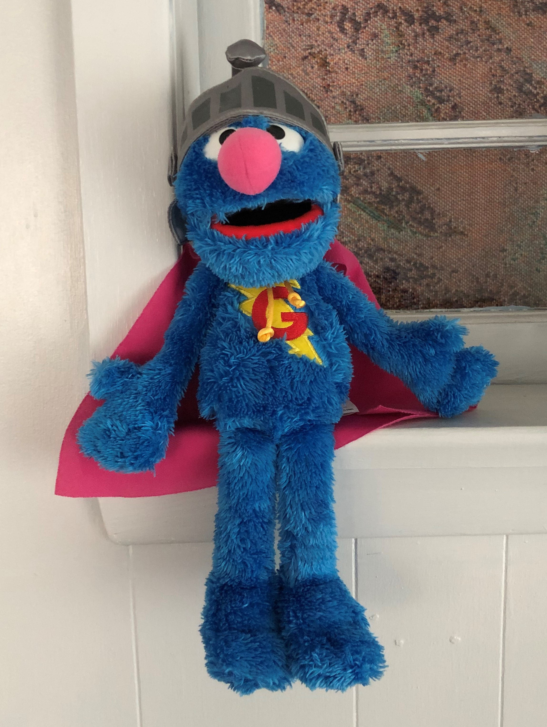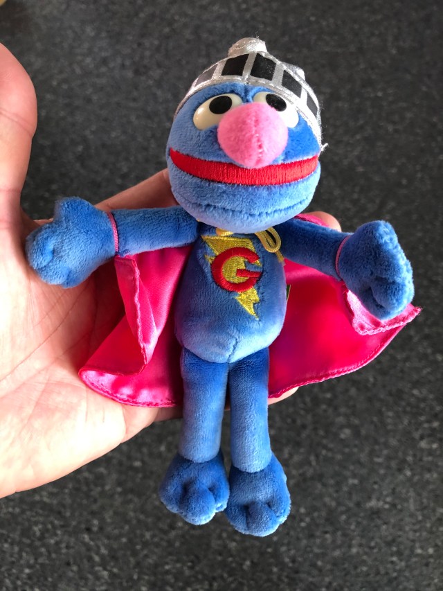 My 2 year old daughter is absolutely OBSESSED with the 8″ version of Super Grover (the cutest of course). He goes down every slide before she does. He sleeps in her crib with her. He is a topic in every conversation. He was MY toy but since she has found him I have given up all hope of his long-term well being and instead am so scared that one day we will misplace him or leave him behind. Thus, I am in search of a new one, either for myself to replace my favorite Super Hero, or as a replacement if my daughter is ever without him. (Also the SG we have could use a wash)