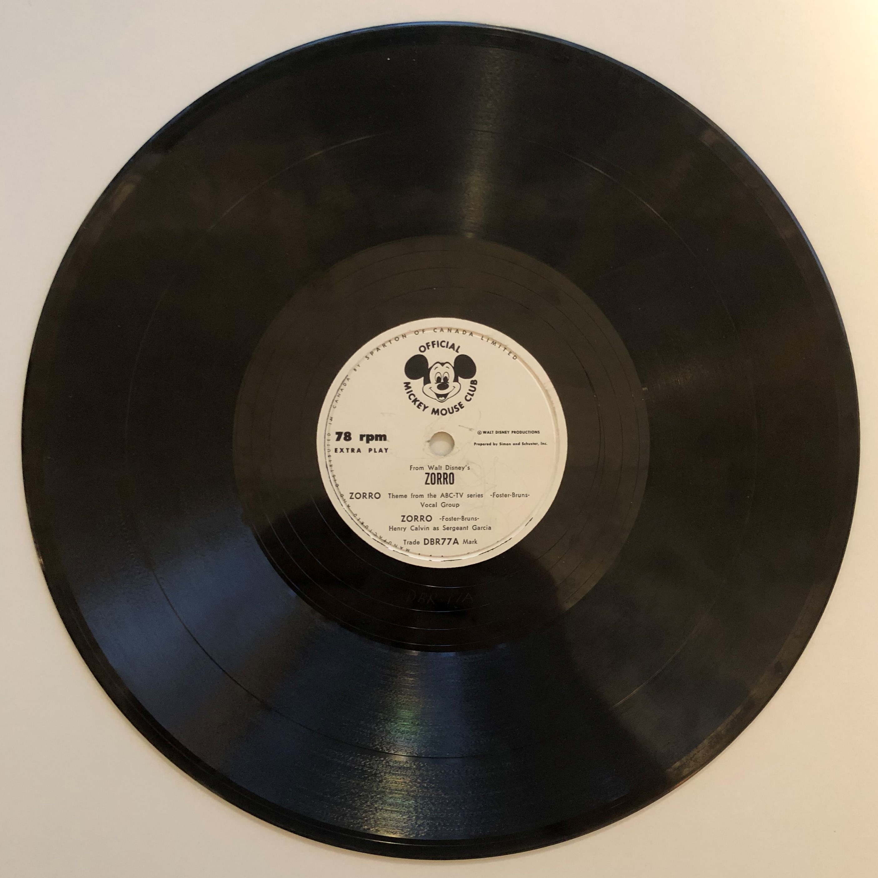 This record is not labeled as a Disneyland Records product, that company being started in 1956. Zorro came out in 1957 with versions of this record appearing on the Disneyland Records label in 1958.
