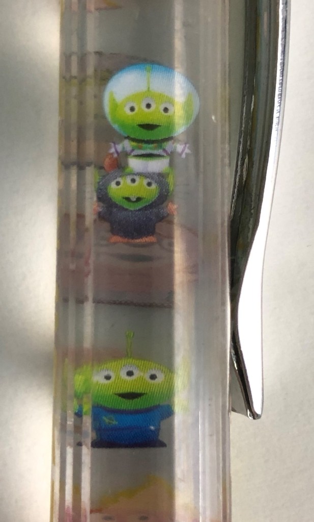 This post will focus on the pens. I bought them because I wanted the Pizza Planet pen to go along with my t-shirt and ball cap of the same branding. But the other pens are fun too!