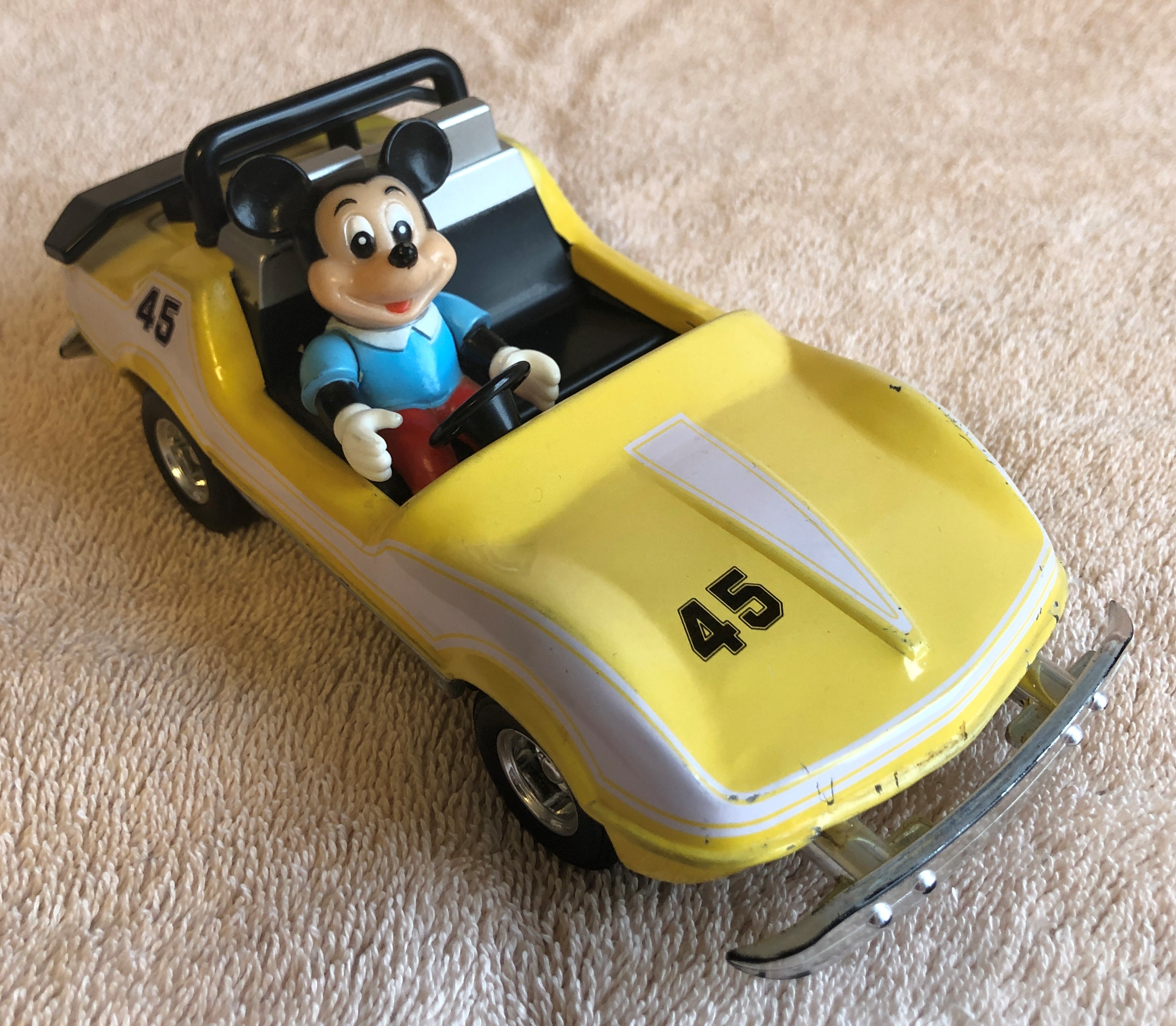Most versions of these cars I’ve found or seen have the number 45 on them. So I was happy to find a variant with a 60, even though it’s fit and finish is somewhat lacking. Maybe this Mickey isn’t as good a driver as Number 45! He’s even lost his steering wheel!