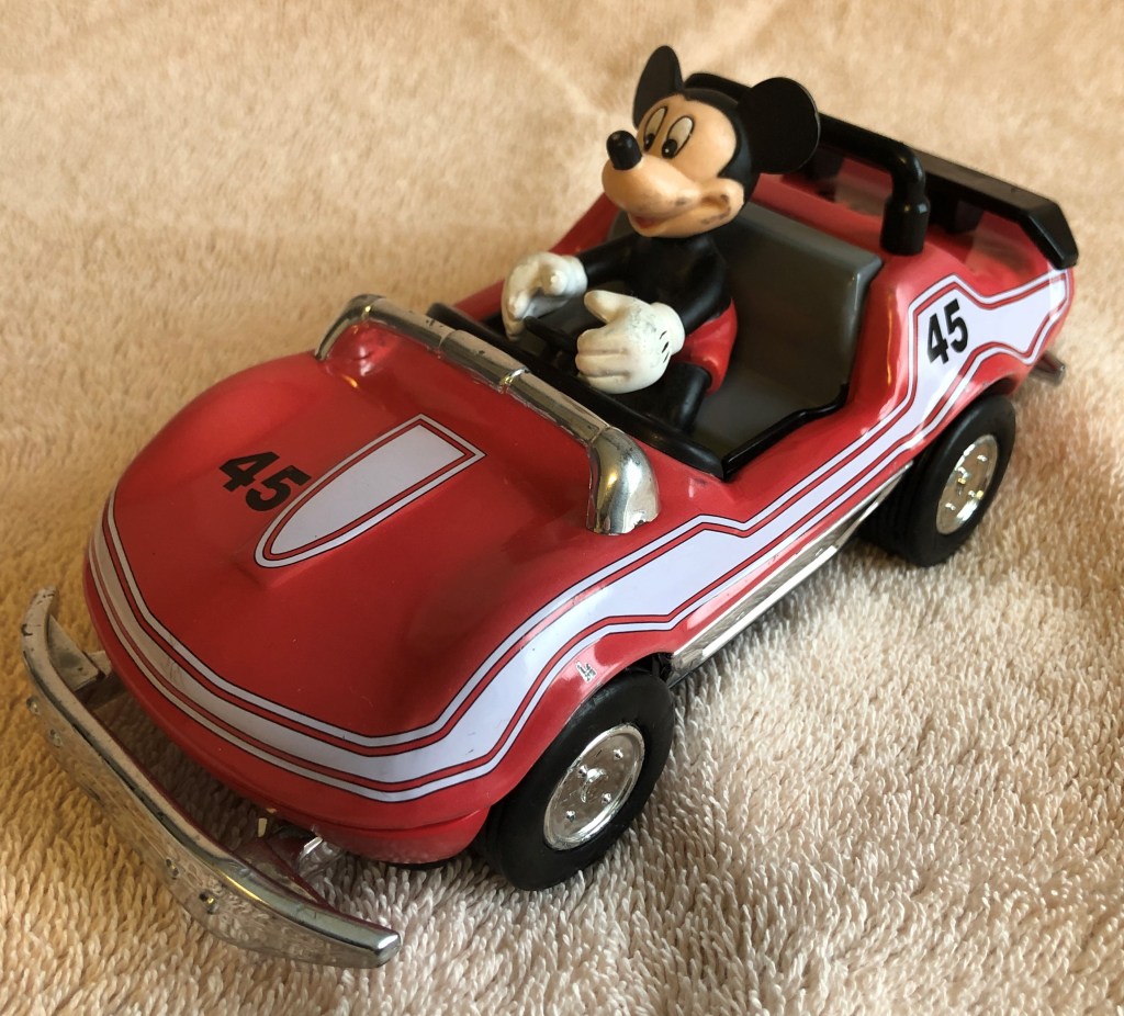 I only have Mickey in the driver’s seat, but there are versions with Minnie Mouse and Donald Duck as well. Although I haven’t seen one, I imagine Goofy must also take the wheel!