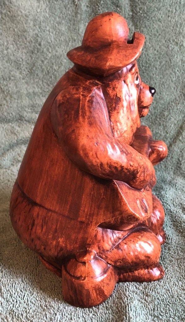This version has a monochrome palate making him seem like he is made out of wood, which is fitting for a bear that lives and… does other things in the woods.