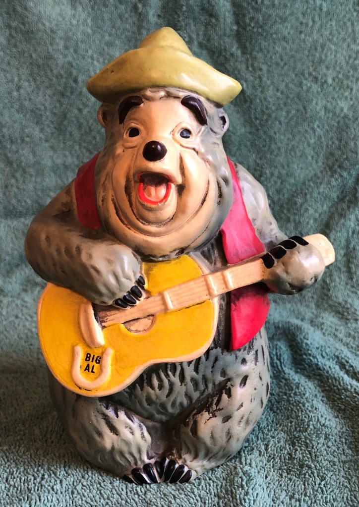 Oh, Big Al! Is that moonshine down beside ya thare? You’d think he’d be a happpier bear with that kind of stimulation near by!