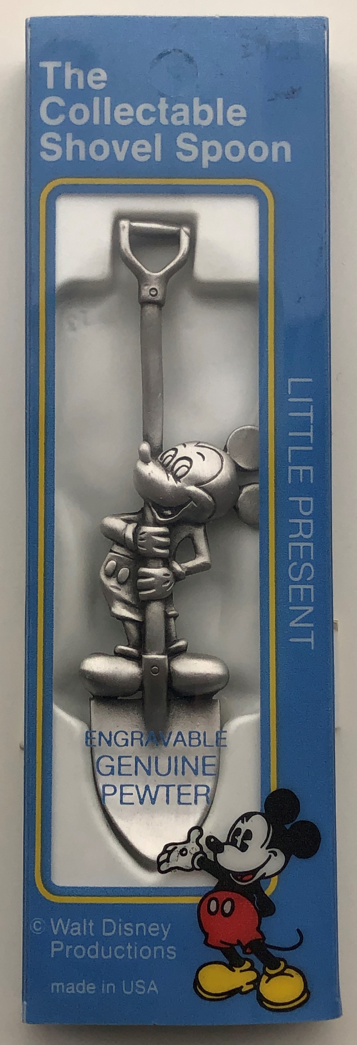 So we know it is a Little Present, it is made of Engravable Genuine Pewter, and was produced in the USA by Walt Disney Productions. That’s a lot of information to pile onto the front of a package! But at least we now know that it was released before 1986 (WDP).